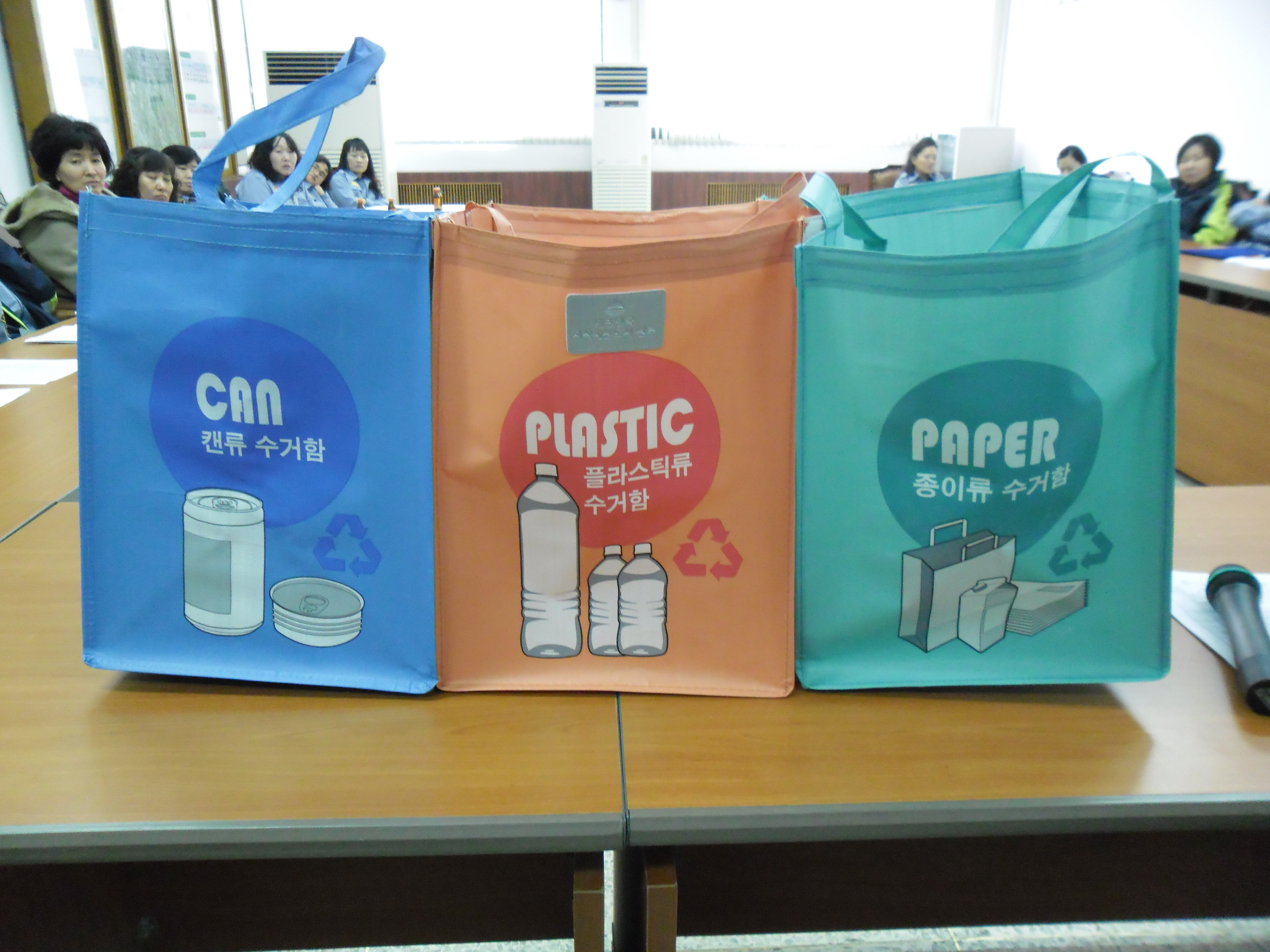 흥업여성대는 봉사활동 뿐만이 아니라 환경지킴이에도 앞장서자는 의미로 원주가 대한민국 지식재산도시로 선정된 것을 기념으로 제작한 재활용 분리 수거함을 원주시 지식경제과장님으로부터 지원 받아 나누어 주었습니다.