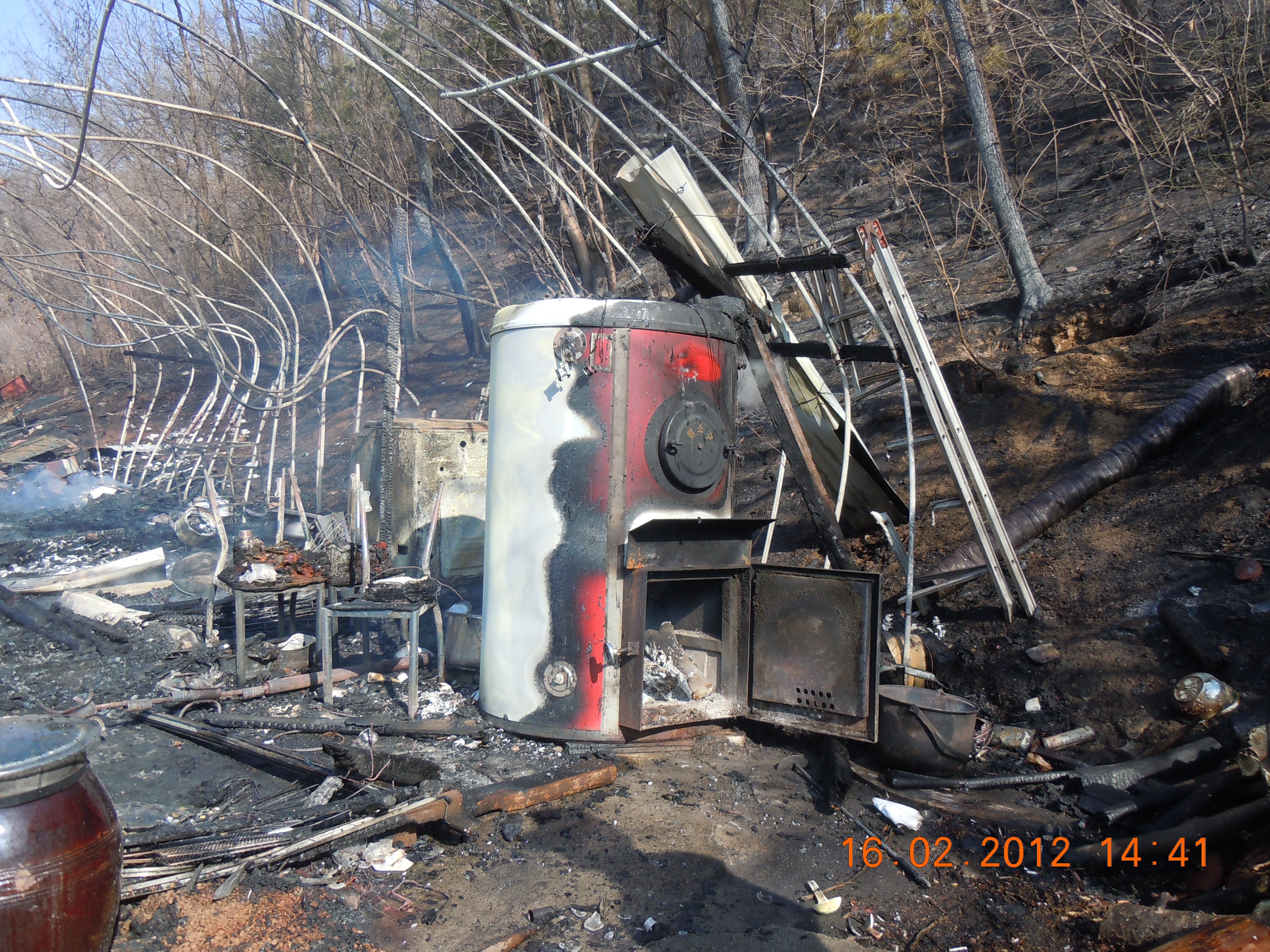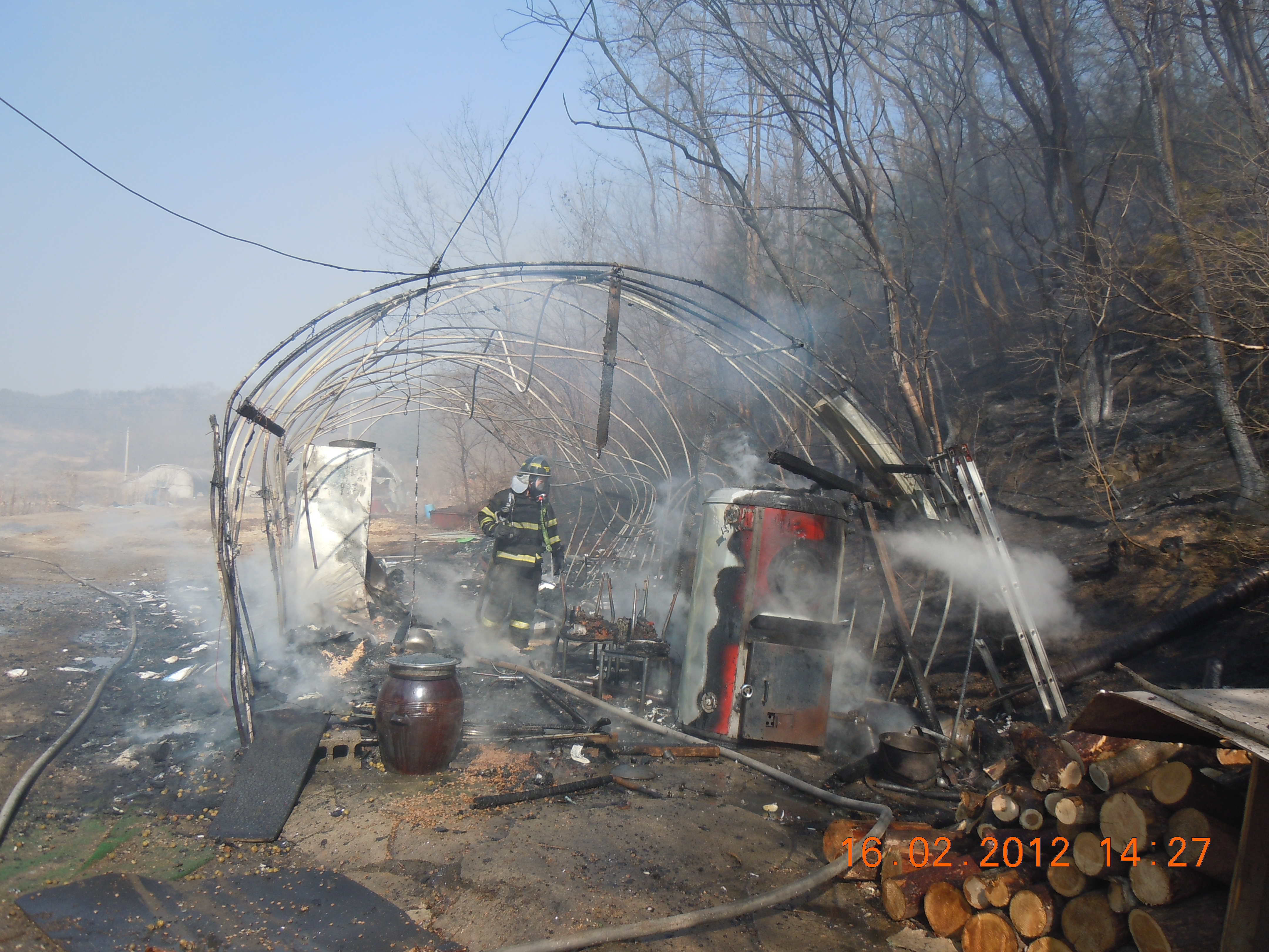나무보일러 부주위의 발생한 화재....