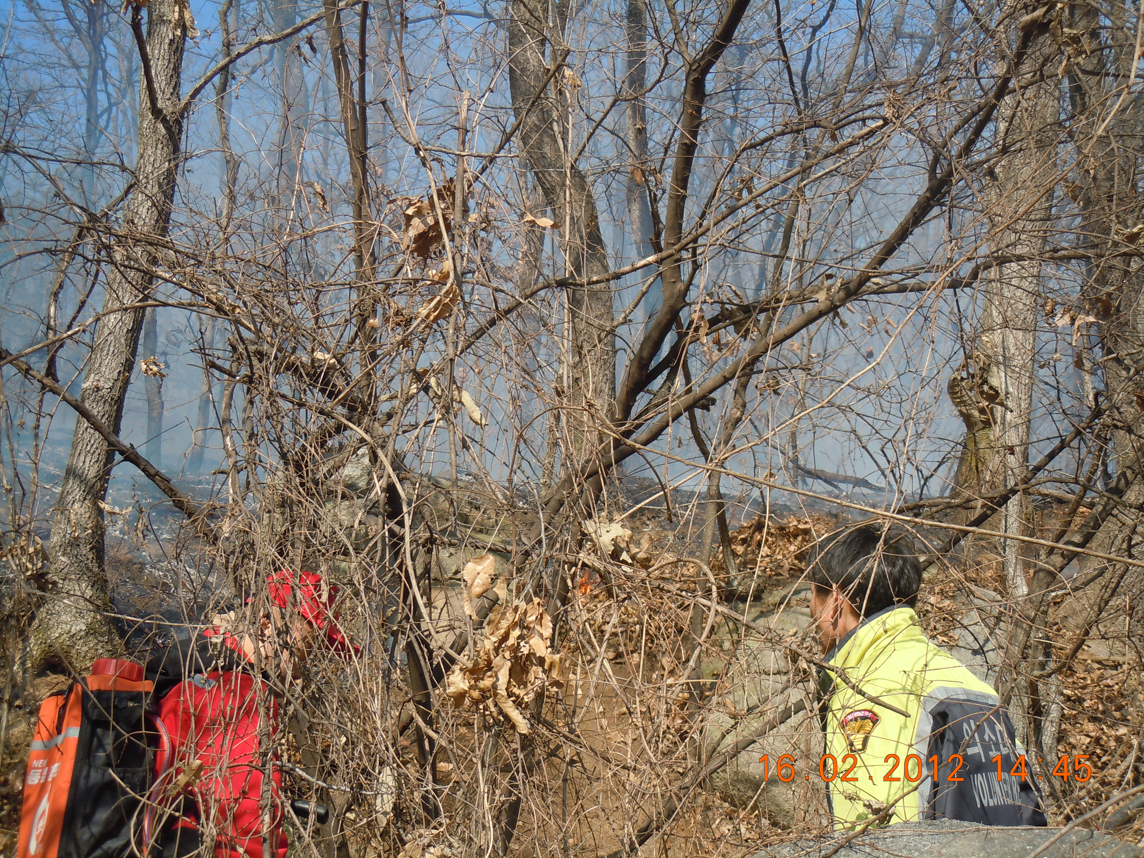 바람이 마이 불고 추운 날씨였으나 많은 분들의 도움으로 산불은 조기진화 되었다.