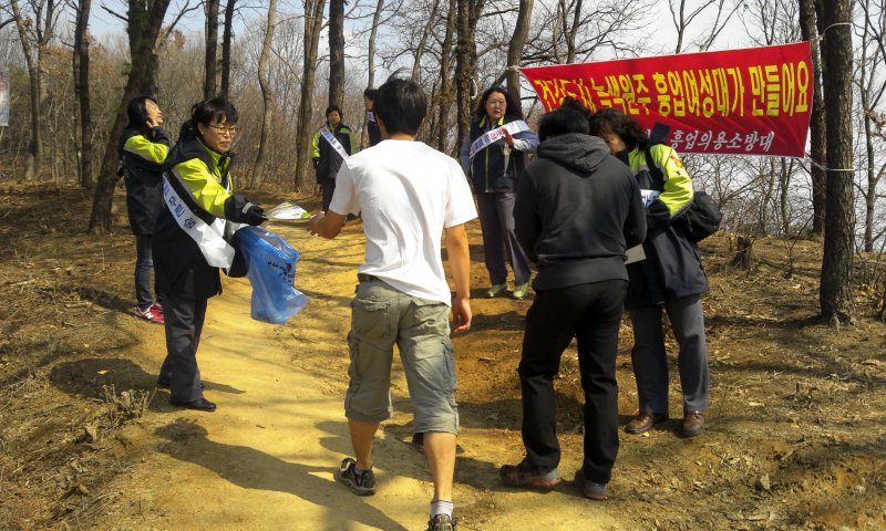 일부 대원들은 입구에서 불조심 홍보 전단지를 나누어주며 불조심 캠페인을 하였고, 일부 대원들은 등산을 하며 등산로 주변의 정화활동을 하였습니다. 그리고 나머지 대원들은 준비해 가지고 간 오미자차, 녹차, 원두커피, 믹스커피 등을 대접하며 등산객들의 몸과 마음을 훈훈하게 만들며, 행복 바이러스를 퍼트렸답니다. ㅎㅎ