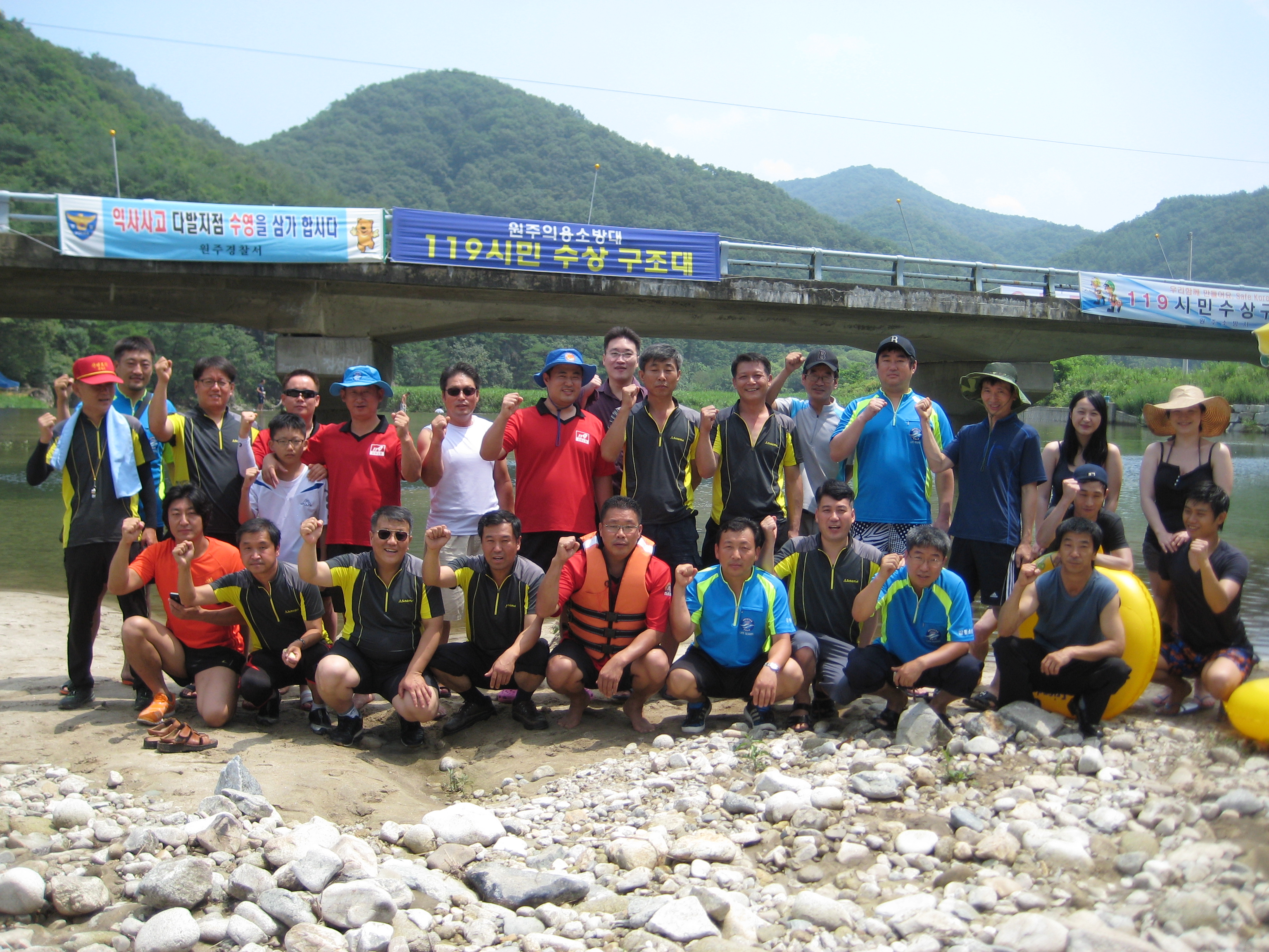 원주의용소방대(대장 조성일)는 7월21일 토요일 칠봉유원지에서 피서객 물놀이 안전 켐페인,부표설치,시설정검,피서객수영금지구역 출입금지등대장님외 49명이 참가했습니다