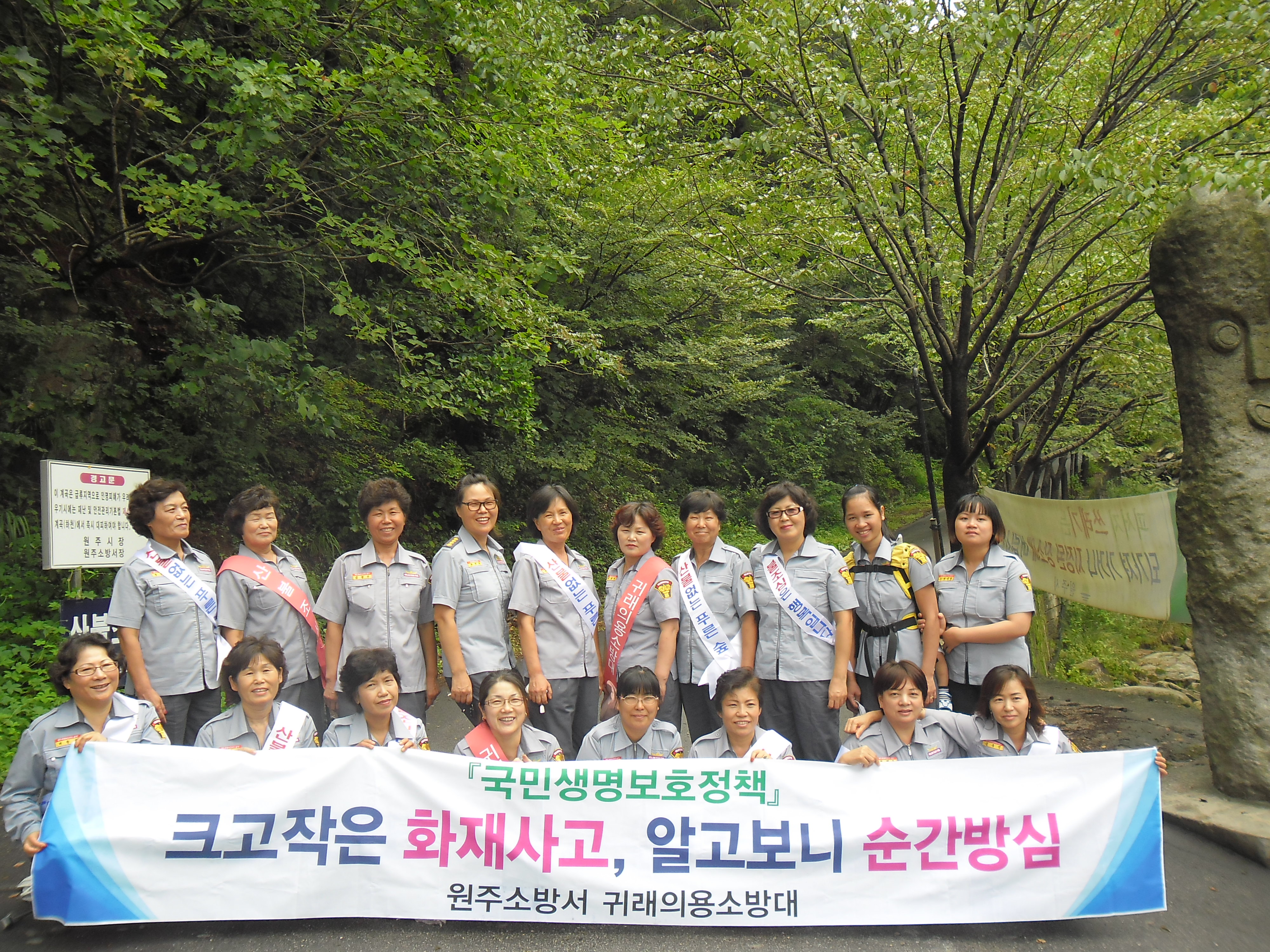 귀래여성의용소방대 (대장 류예자)은 2012년08월13일 정기교육실시후 귀래면 운계리 천은사계곡에서 피서객을 대상으로 물놀이 안전 사고예방 캠페인을 실시하였습니다.
