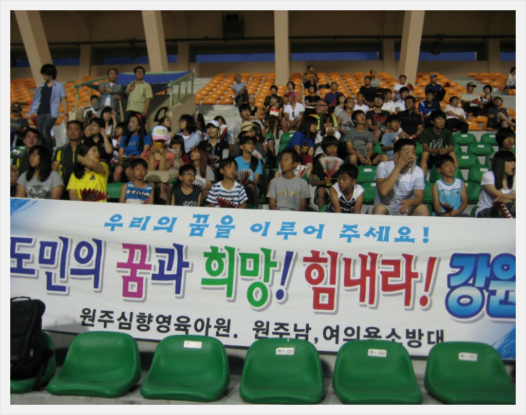 2012년 8월8일 (13:00~24:00) 원주남.여의용소방대는 심향영육아원의 어린이들 40여명과 강원FC의 경기를 관람시켜주기 위하여 강릉으로 여행을 다녀왔습니다. 휴게소에서 피자와 음료로 간식도 먹고, 강릉 앞바다에서 물놀이도 하고, 고기부페에 가서 저녁을 먹은 후, 강원과 제주의 프로축구 경기를 관람하고 왔습니다.