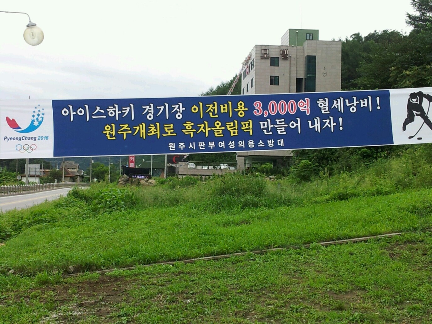 판부 의용소방대(대장 박영길) 및 판부 여성의용소방대(대장 노순일) 는 8월 27일 지역 중요사안인 동계올림픽 아이스하키 경기 유치를위한 플랭카드를 부착하였습니다.