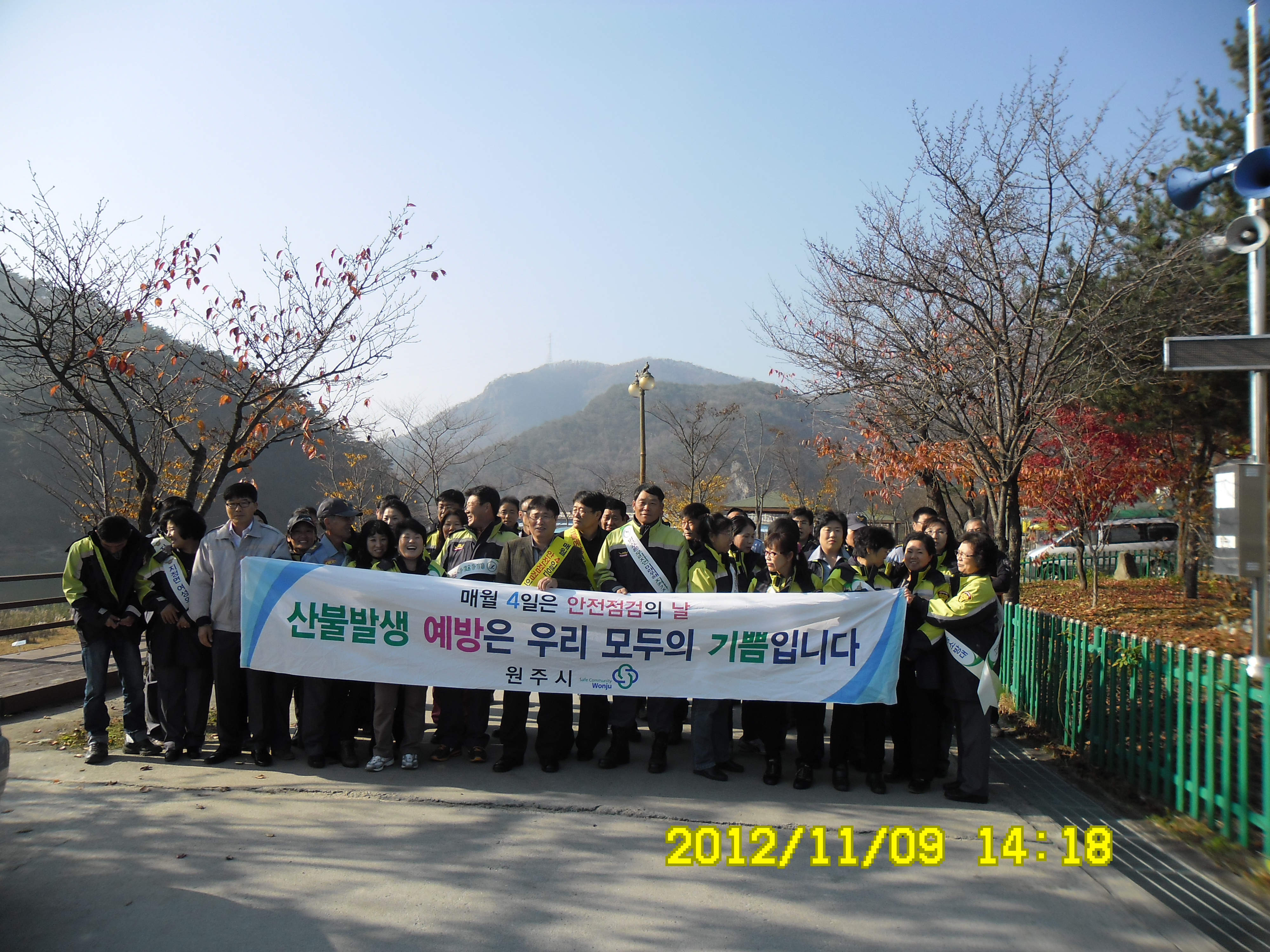 2012년 11월9일 소방의날에 지정남여의용소방대 대장 한현수외22명과 대장 박인수외24명은 간현관광지에서 그리고 간현역 앞에서 산불예방캠페인을 하였습니다.