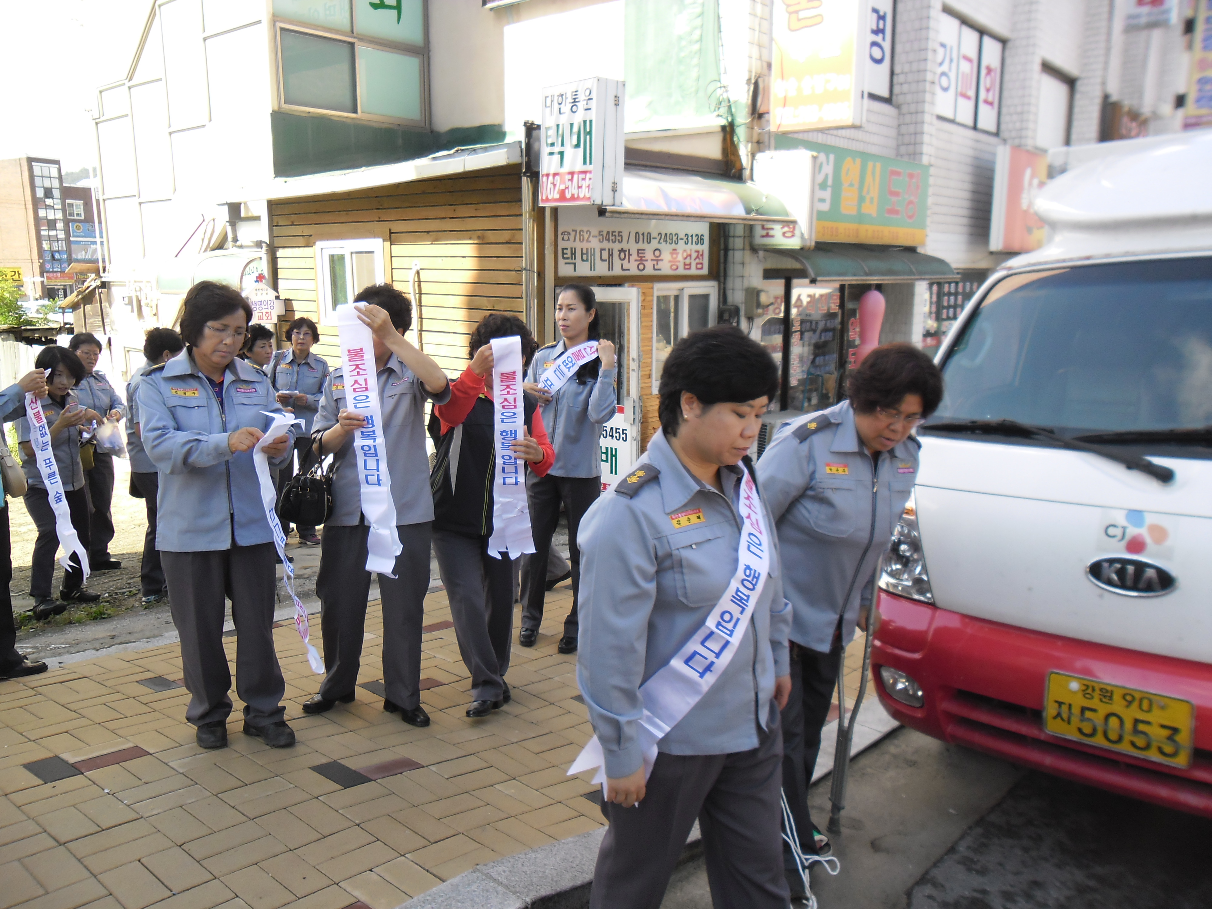 정기교육을 마친후 꺠끗한 거리환경을 위해 캠페인 을 실시함
