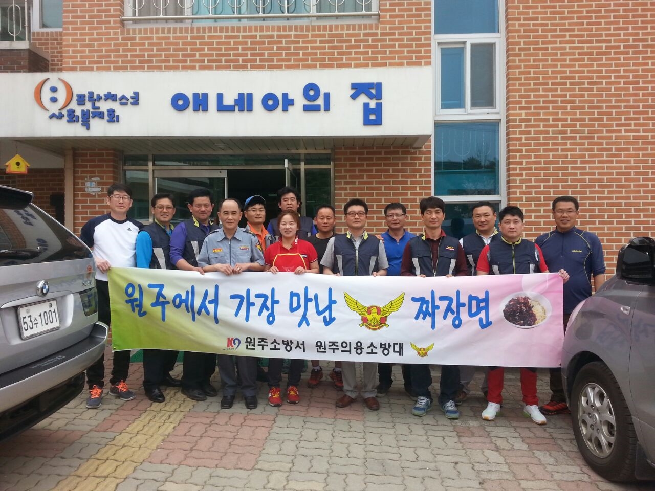 원주의용소방대(대장 조성일)는 4월15일 애네아집에서 자장면 중식 봉사를 실시했습니다. 이날 봉사에는 대원15명이 참가했습니다