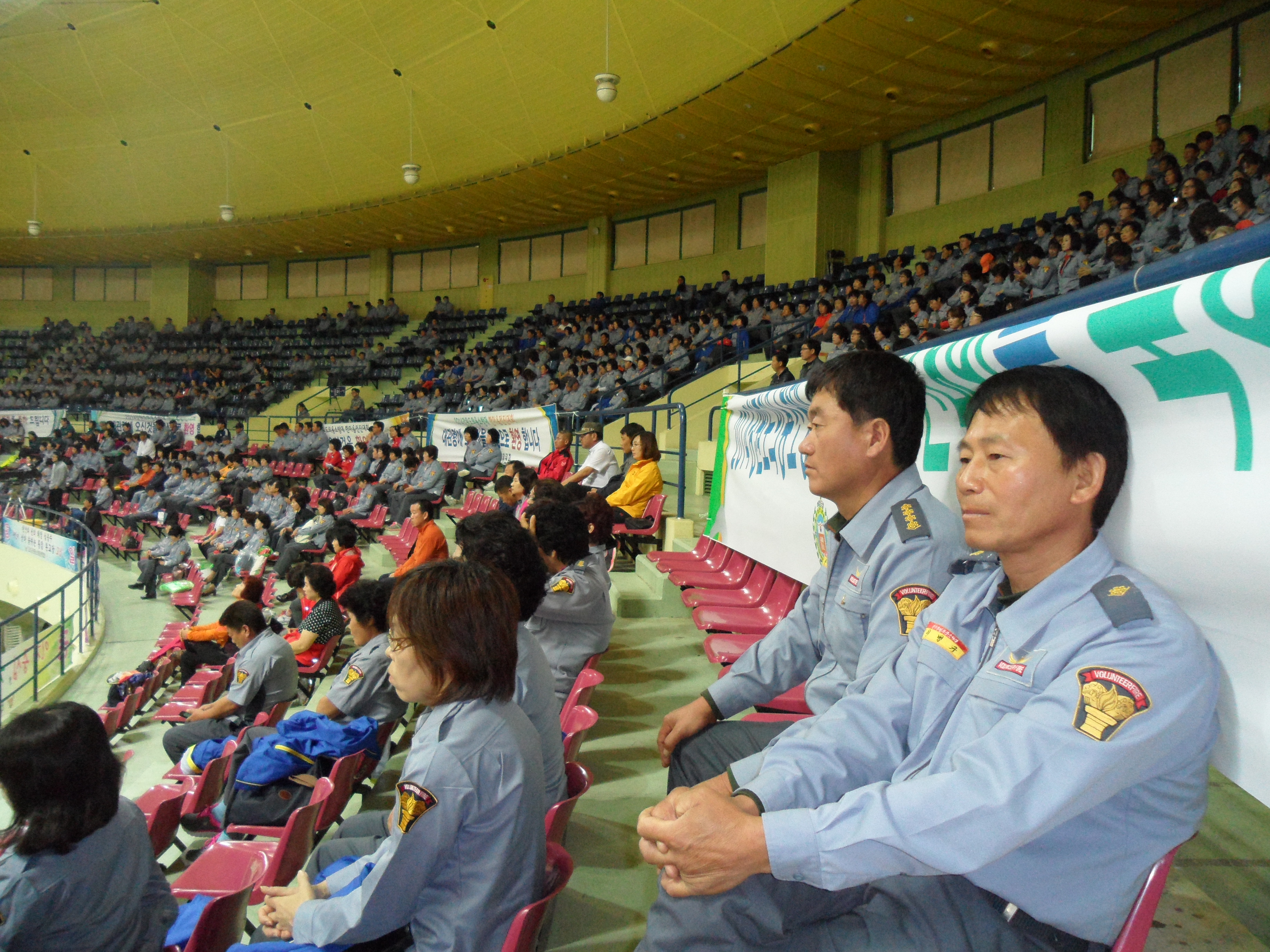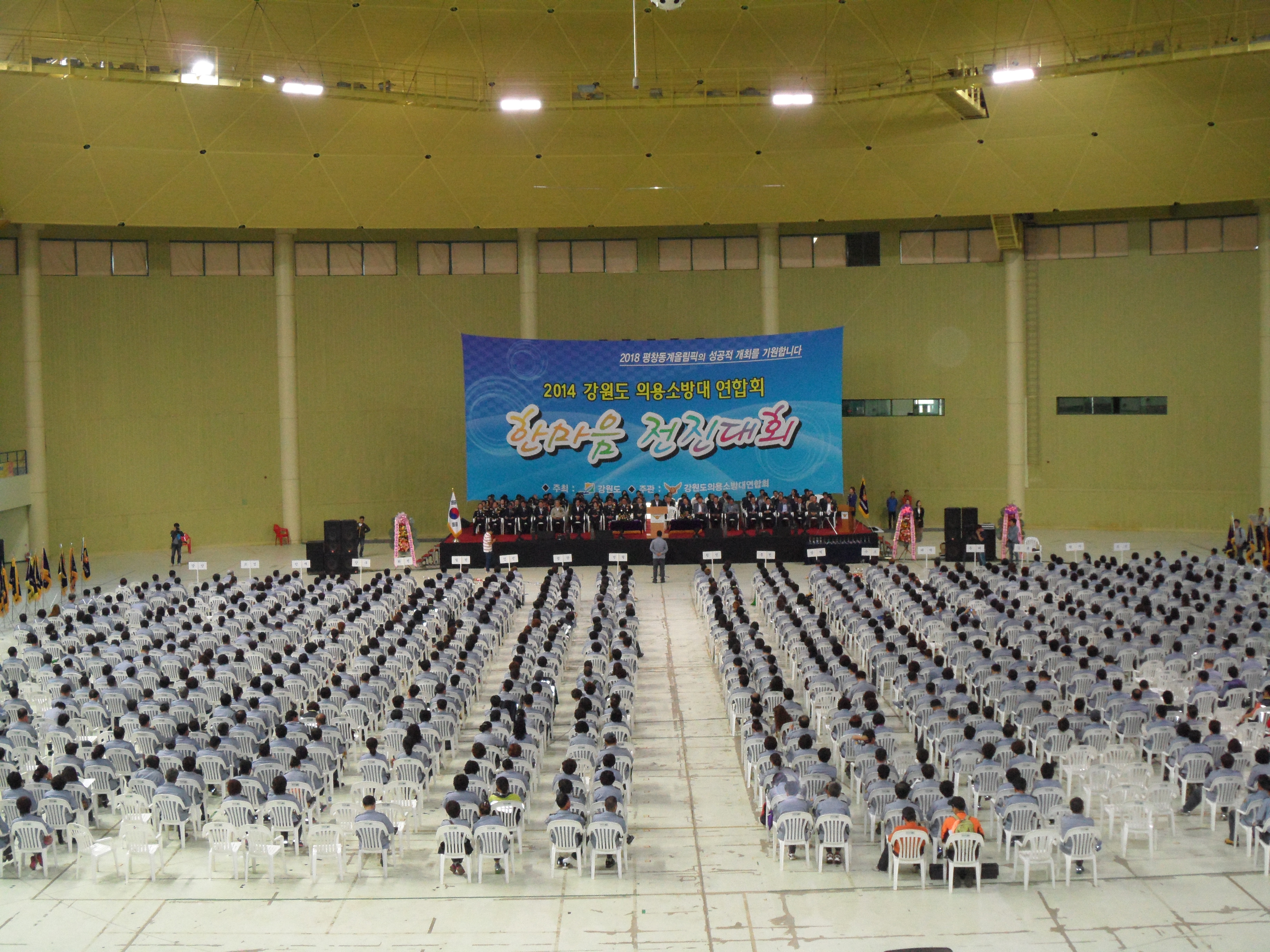 메아리치는 원주시의용소방대연합회 대원들의 함성이 용평돔 경기장