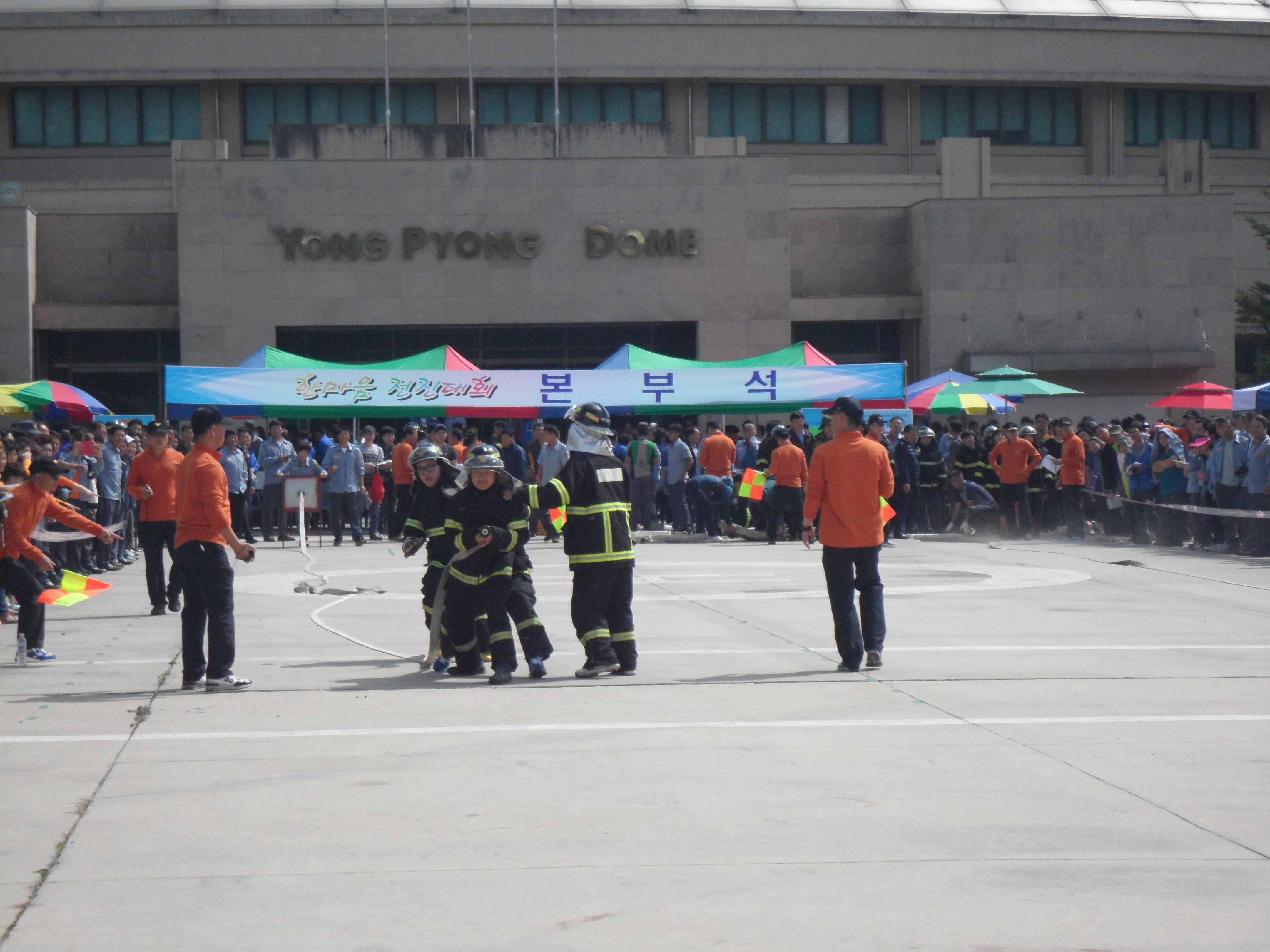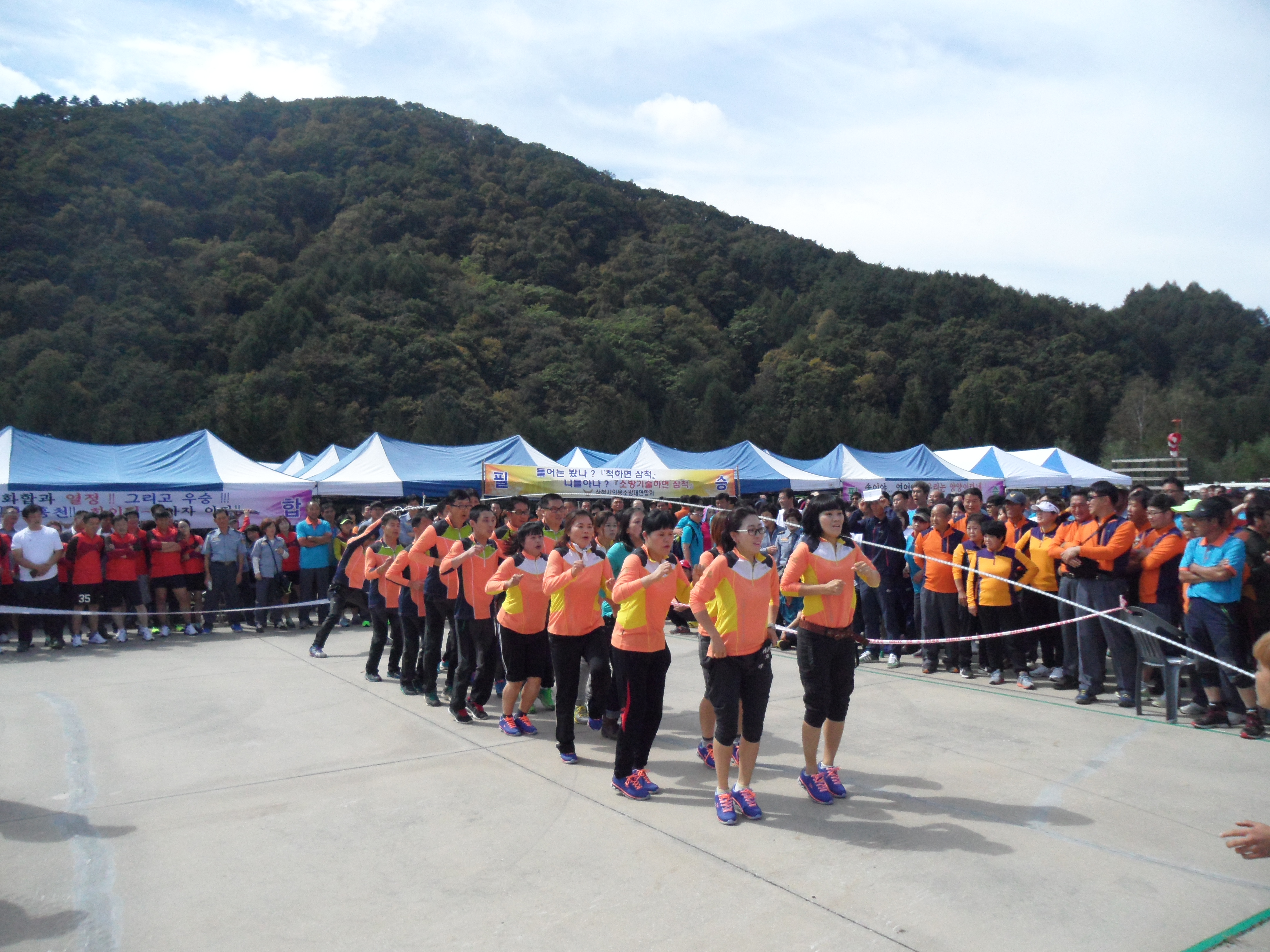 대원들이 모여 그 동안 쌓은 소방기술경연을 뽐내며,