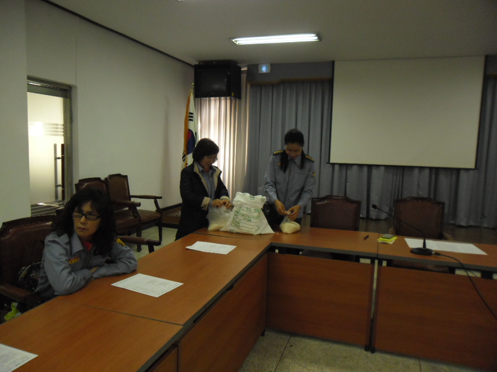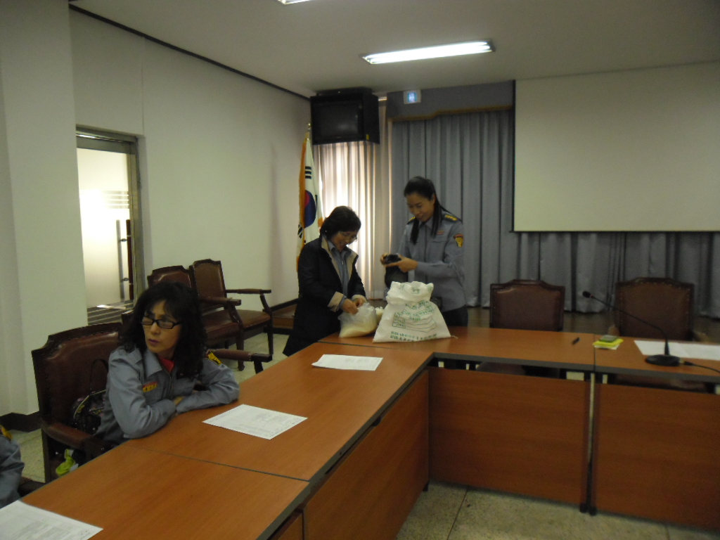 정기교육때 대원들의 한사람 한사람의 정성으로 모은쌀을 전해드립니다
