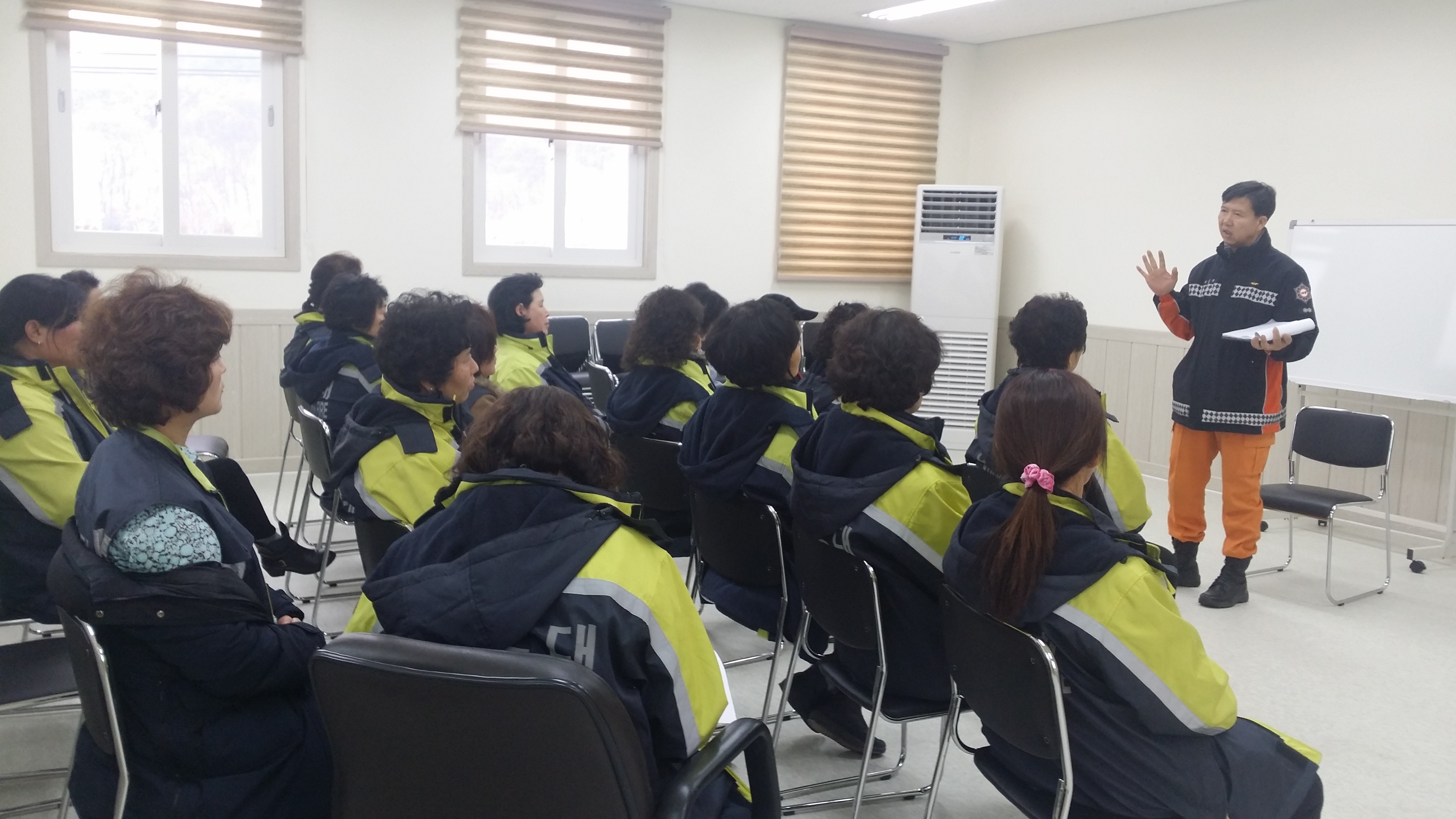 2015년 1월21일 지정여의소대 대장 박인수외 25명은 정기교육을 받았습니다. 최종문문막센터장님께서 오셔서 의용소방대원으로써 해야할일 대해서 말씀하시고 바뀐조례에 대해서도 말씀하셨씁니다.