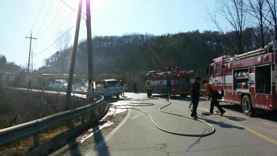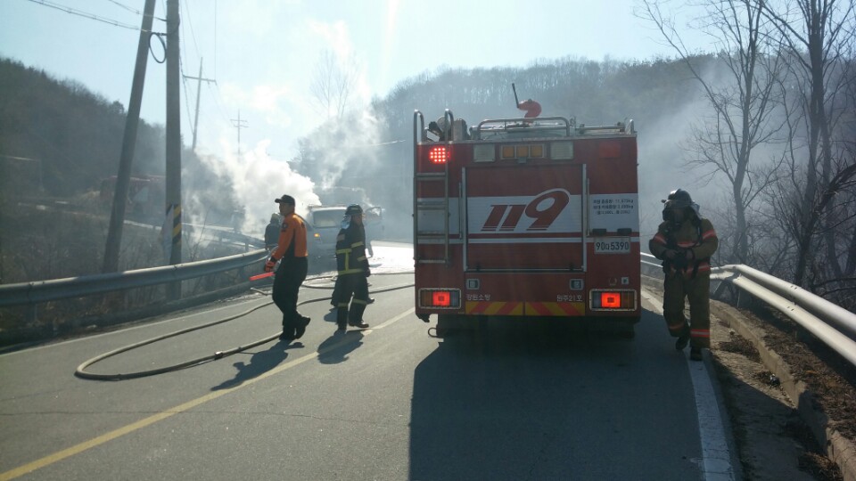 1 톤 트럭 화재 사고 발생