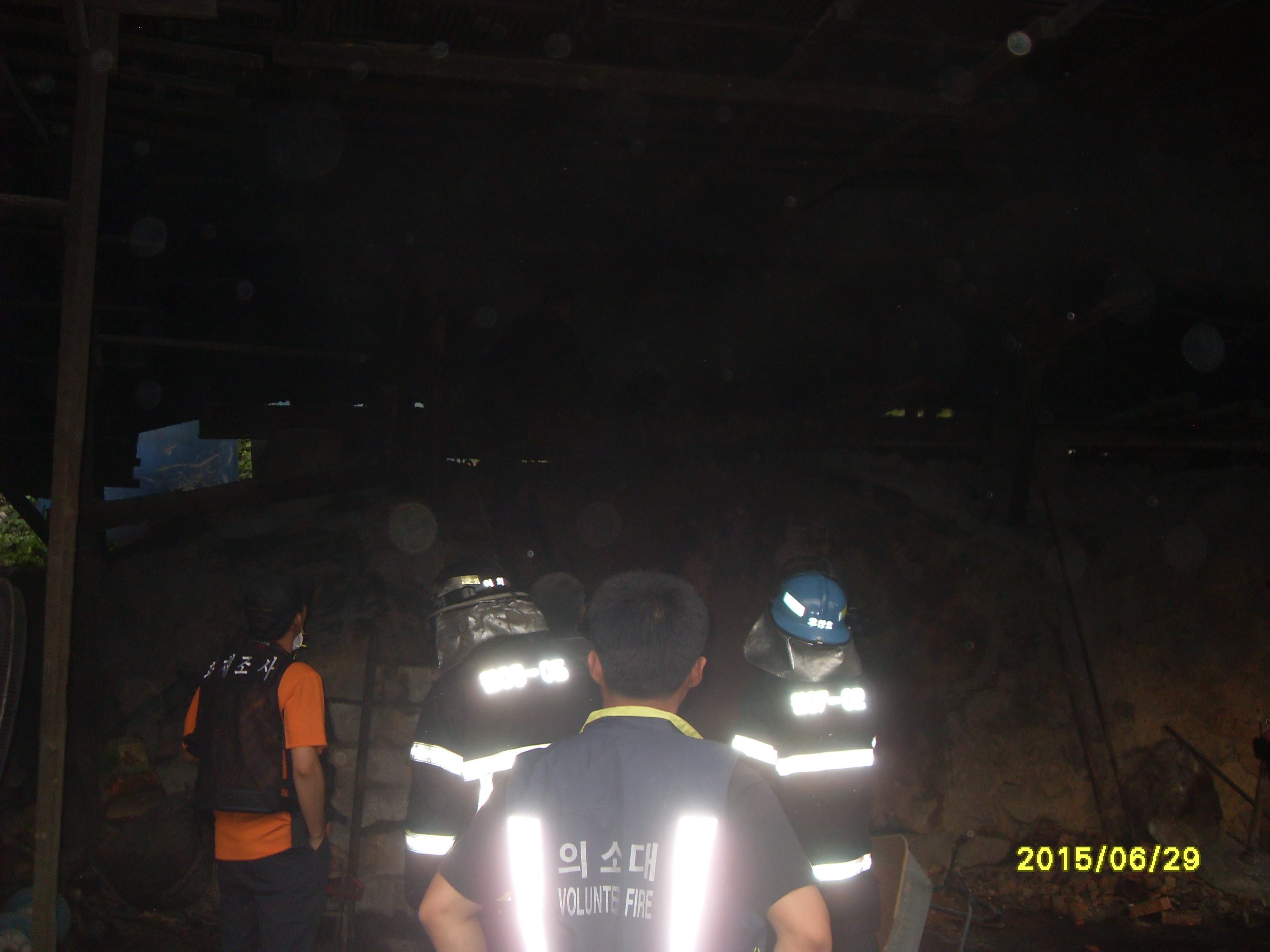 결과 : 초기 진압으로 지붕의 불길을 잡고 숯가마 지붕을 철판과 진흙을 개어 붙이는작업을하여 숯가마에서 나오는 불길을 완전 차단하고 지붕에 남은 불씨를 완전 진화 하였다...