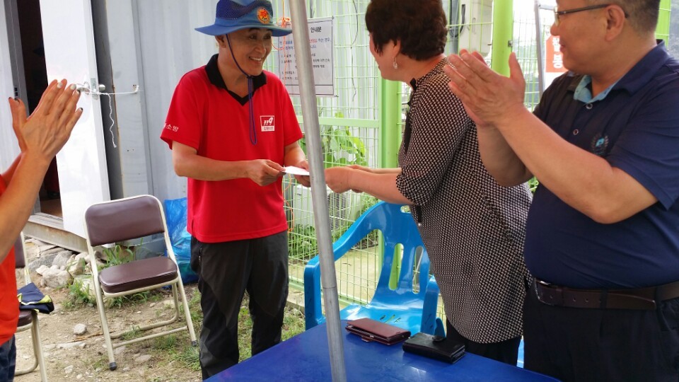 30일 10시에 우산동 진흥원주차장에서 임원진9명이 모여 칠봉유원지로 출발^^~~~ 무더운 날씨에 고생하시는 원주남소대 수난구조대 방문^^~~ 시원한 수박과 금일봉을 준비하여 조성일대장님 총무부장님께 전달 하였습니다^^ 첫번째 방문팀이라고 조성일대장님이 더 반겨주시네요 항상 원주여성의용소방대는 "솔선수범하자" (김영연대장님) 뜻으로 칠봉유원지 쓰레기줍기 캠페인에참여 (담배꽁초외 깨진유리조각...) 칠봉유원지 다녀왔습니다^^~~~ 시원한물에 발도 못 담그고 뭐가 바빠 그냥 나왔네요♥♥♥
