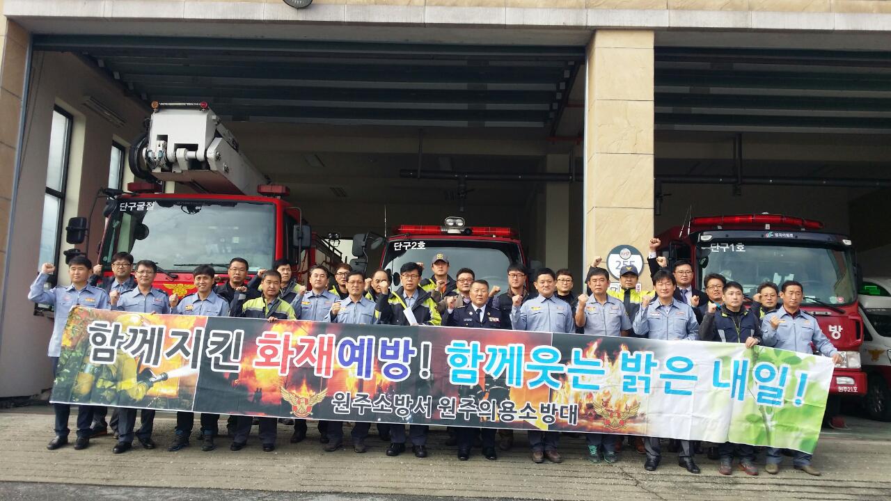 원주남성의용소방대 조성일대장외(42명)은 11월20일 11월 정기교육 및 켐페인을 단구센터와 원주천 환경정화활동을 하였습니다