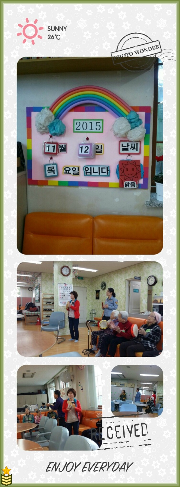 2015년 11월12일 목요일 3시부터 4시까지 권옥희부장님과 보급반 ( 안금향 정세연 박상주 대원) 노래봉사에 다녀왔습니다....