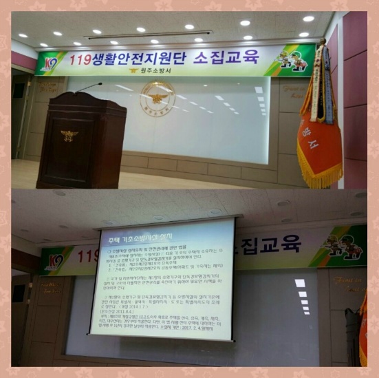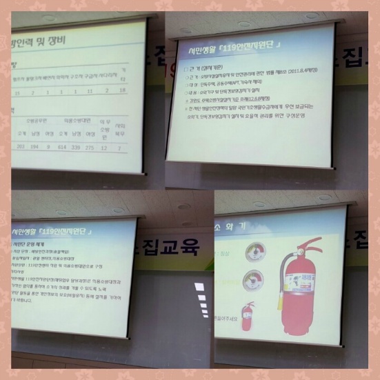 2015년11월23일 월요일 1시30분 ~ 3시30분 명륜센터에서 119생활 안전지원단 소집교육에 김영연대장님 이미자총무부장님 권옥희부장님 천영덕부장님 참석하여 교육을 받으셨습니다...