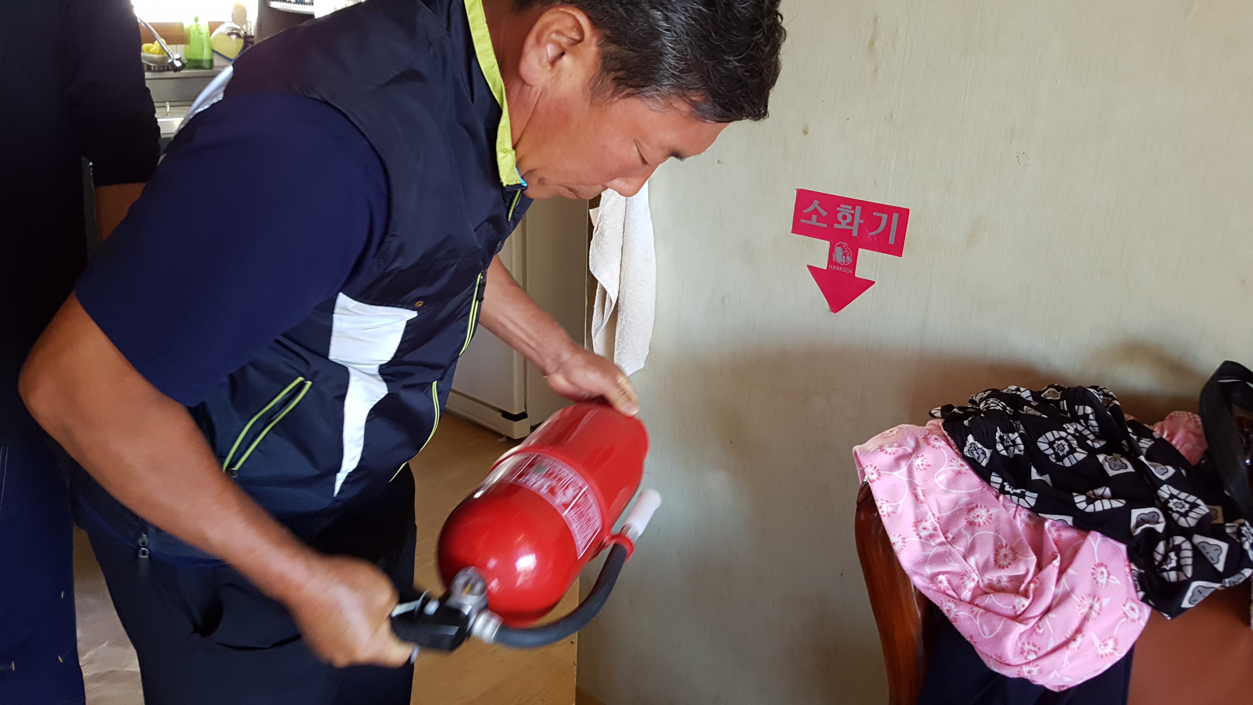 아울러 소화기 사용법에 관하여 교육실시함.