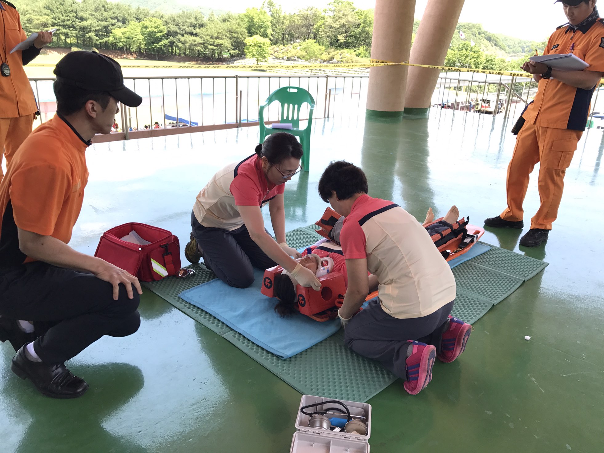 심폐소생술 . 부목 고정 응급환자 이송 등 많은 경기대회가 있었으며
