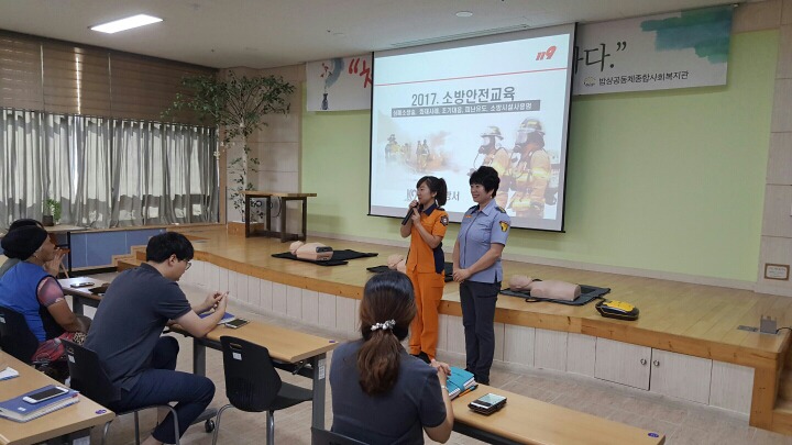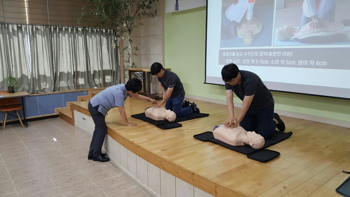 내용: 원주소방서 주관으로 밥상공동체 직원분들과 소방안전교육및 심폐소생 교육에 참여 하였습니다