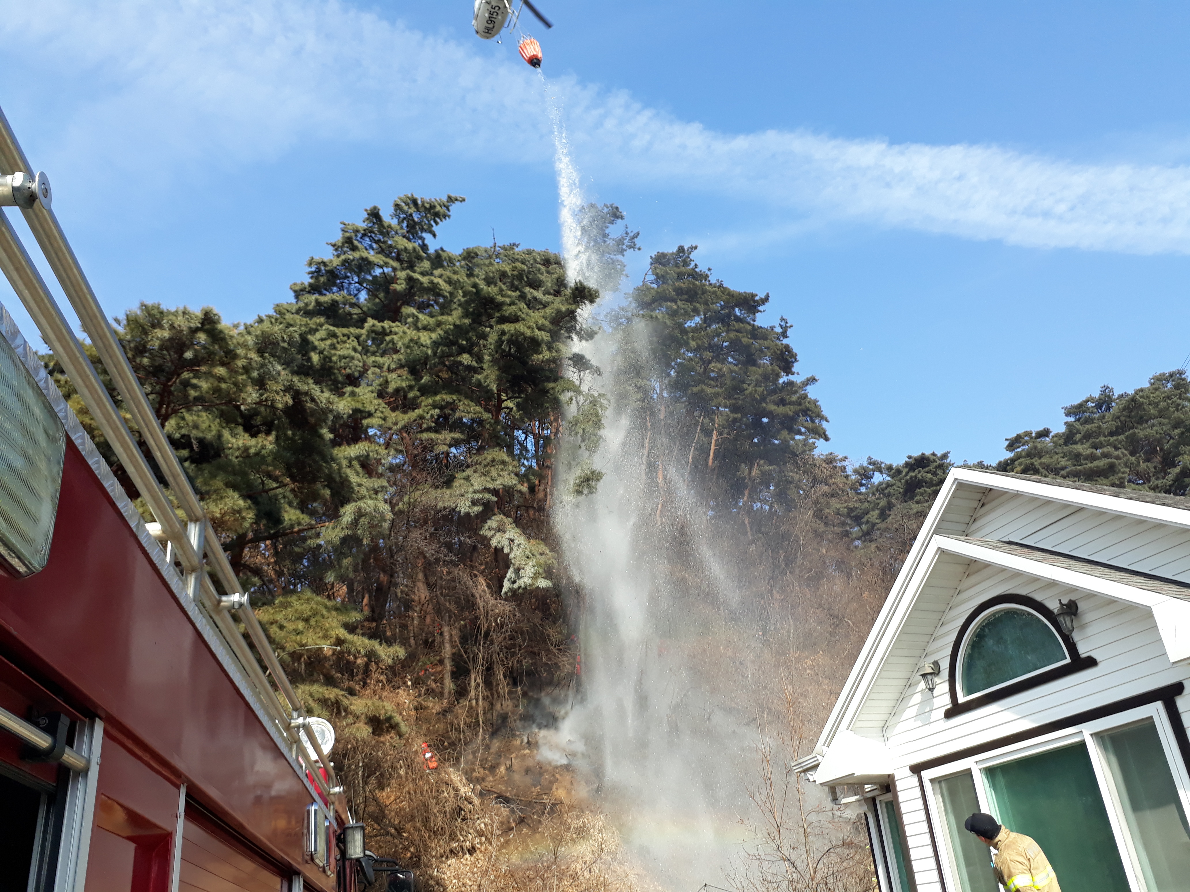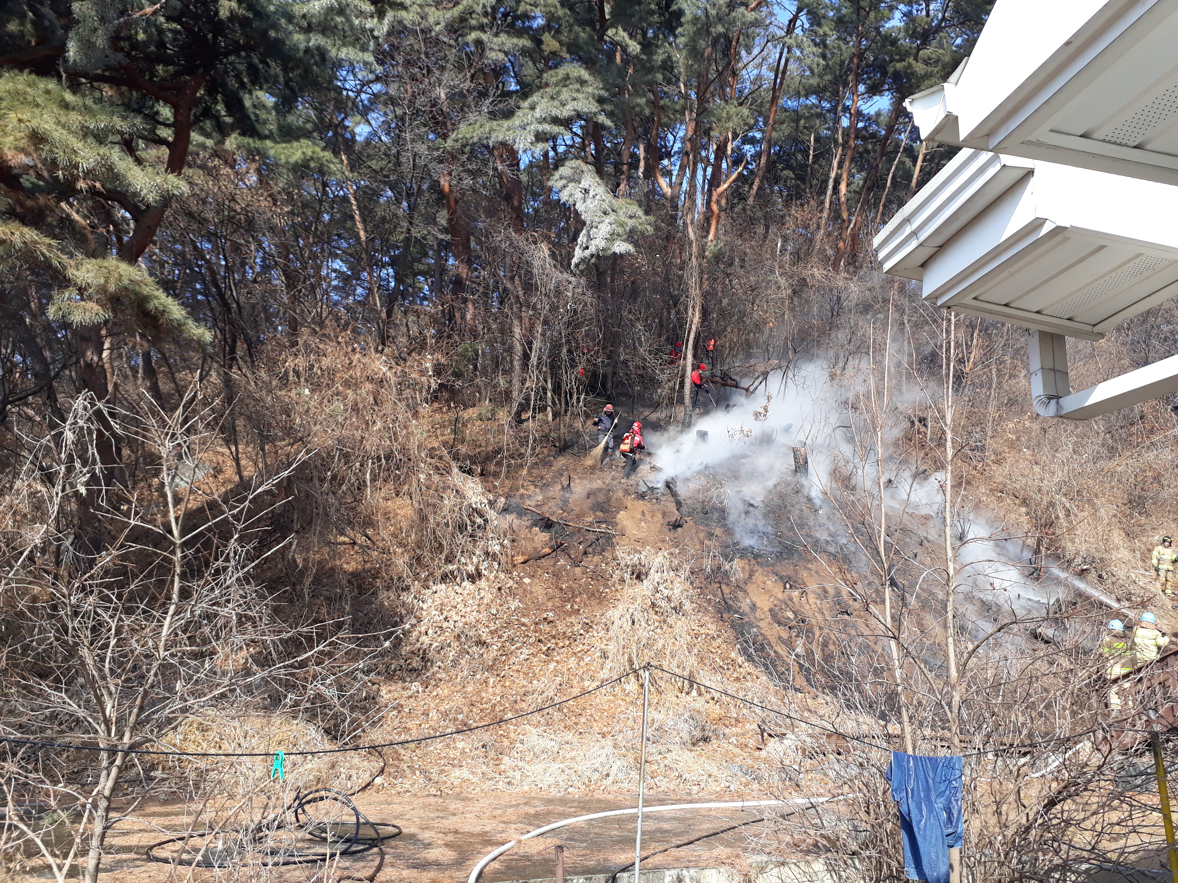 학곡리 저수지 산불 진화 현장