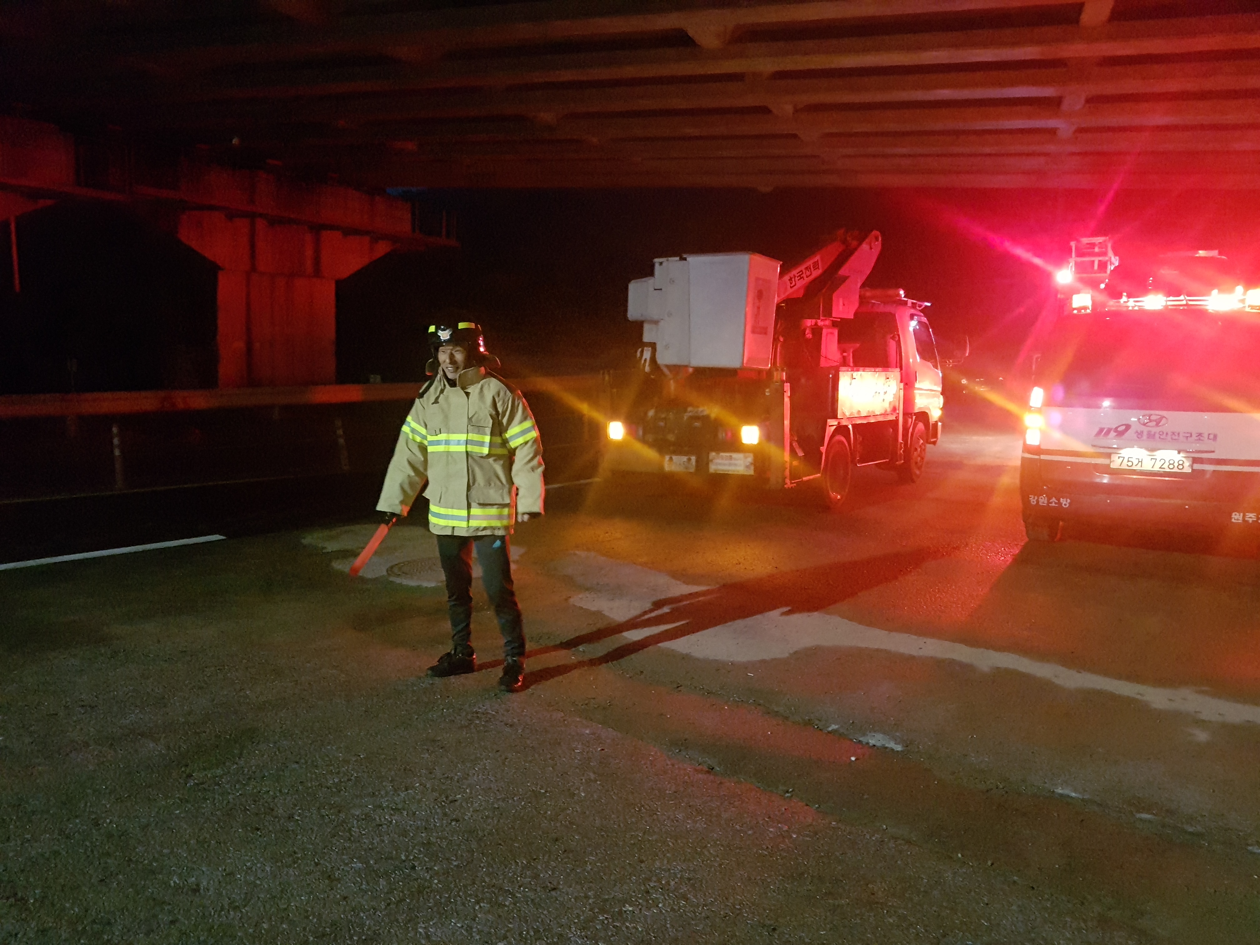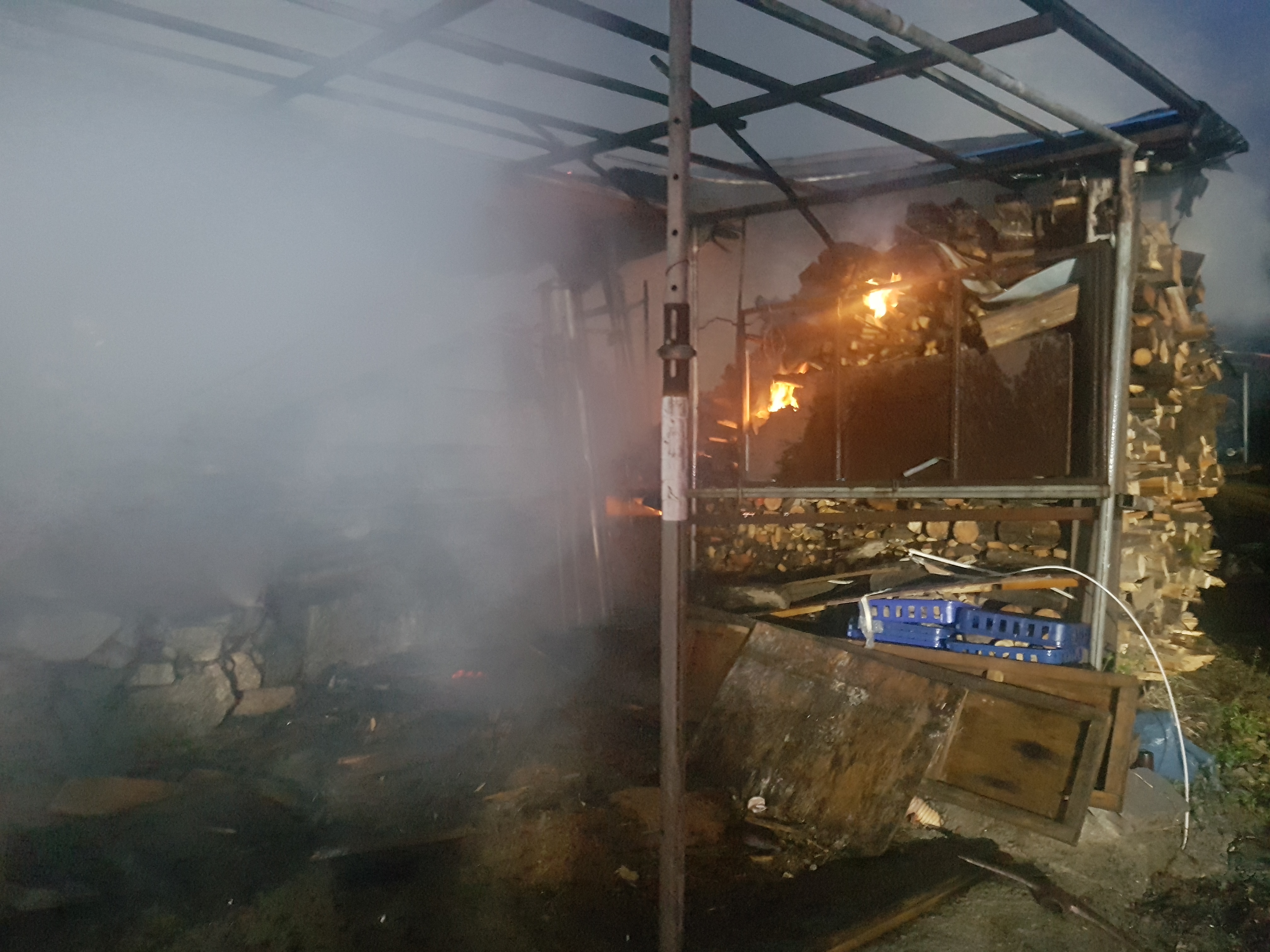 잔불정리가 늦은 밤 12시까지 지속 되었습니다.