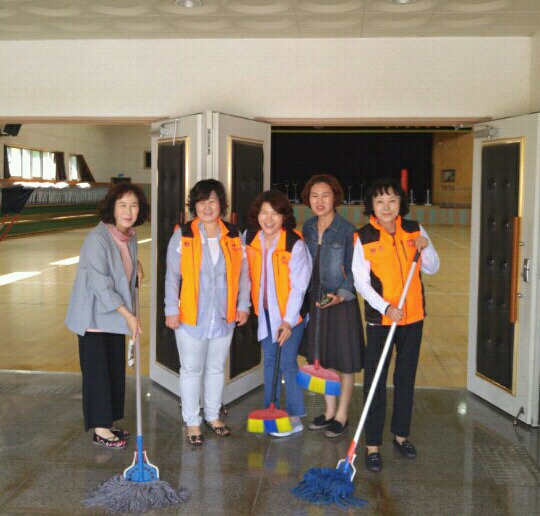 내용: 체육관 실내 바닥청소 및 입구먼지제거 쓰레기분리수거