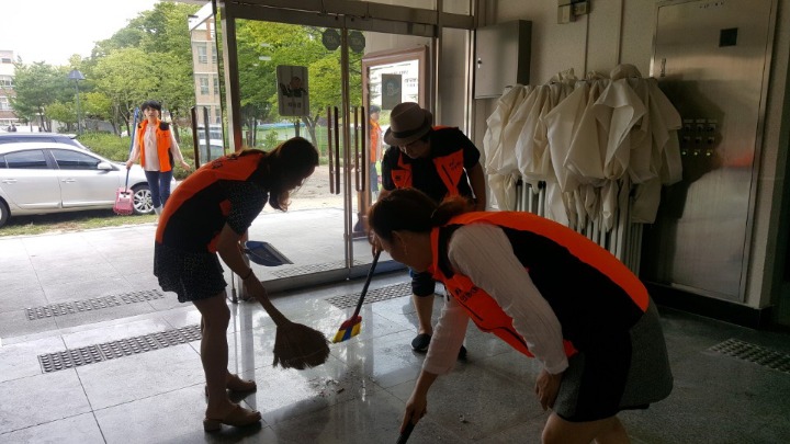 내용: 체육관 실내 바닥청소 및 입구먼지제거 쓰레기분리수거