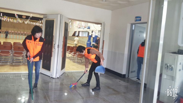 내용: 체육관 실내 바닥청소 및 입구먼지제거 쓰레기분리수거
