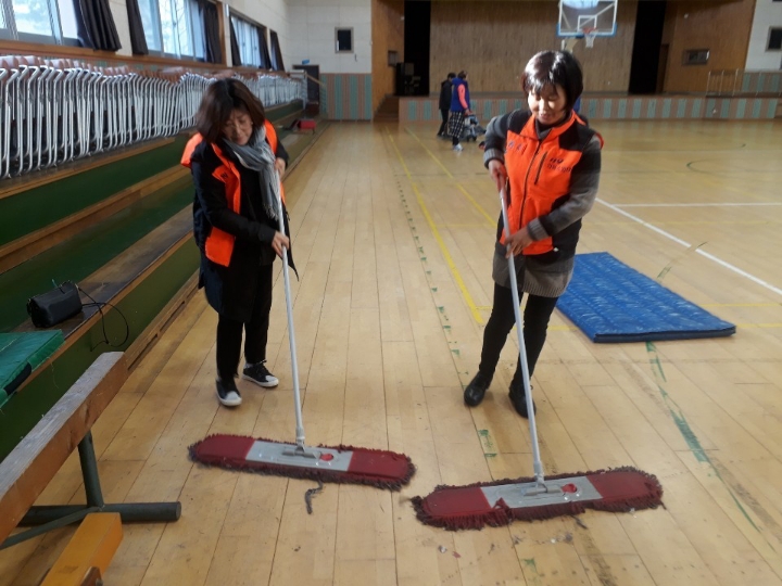 내용: 체육관 실내 바닥청소 및 입구먼지제거 쓰레기분리수거