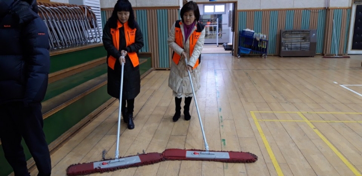 내용: 체육관 실내 바닥청소 및 입구먼지제거 쓰레기분리수거