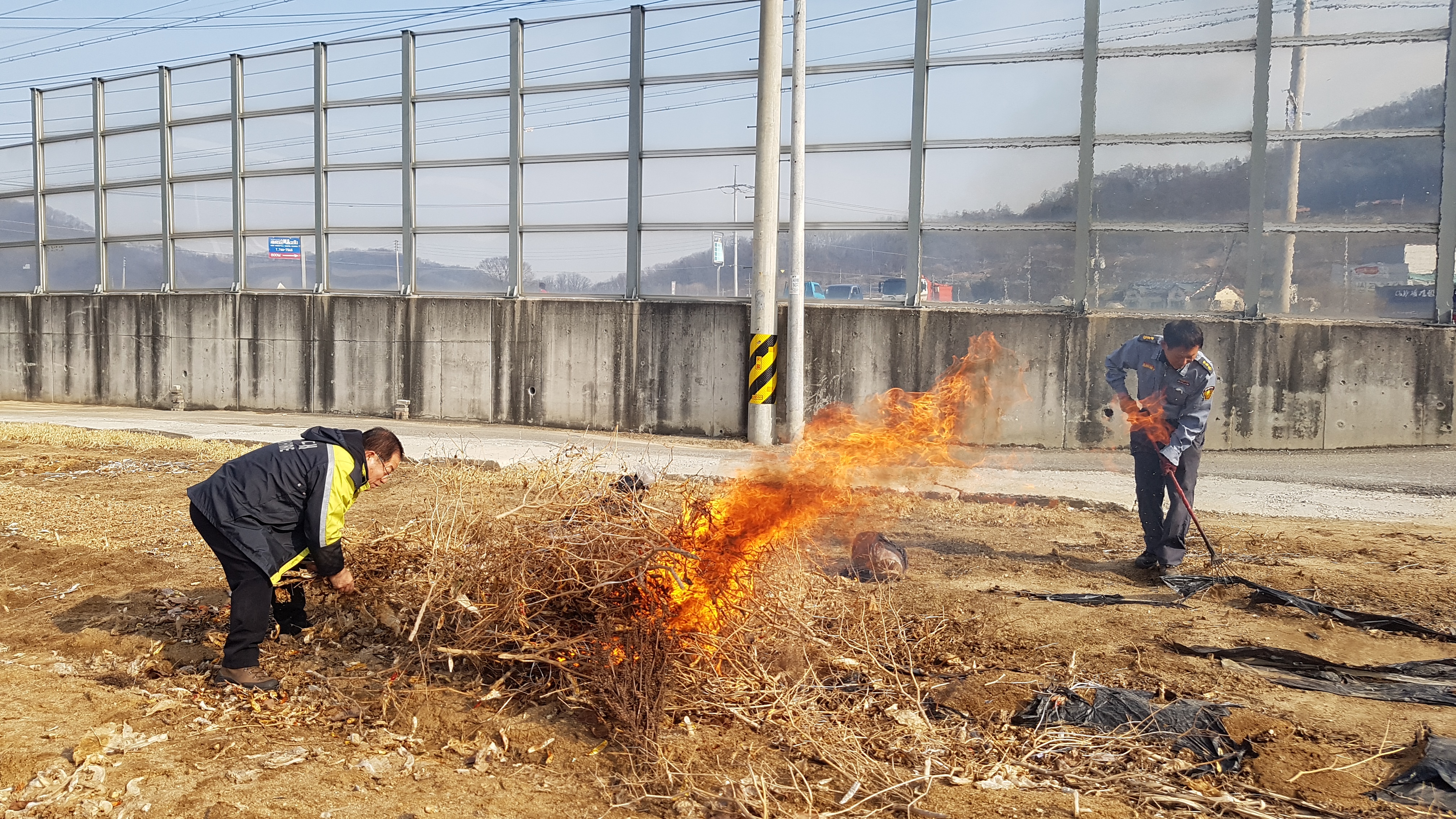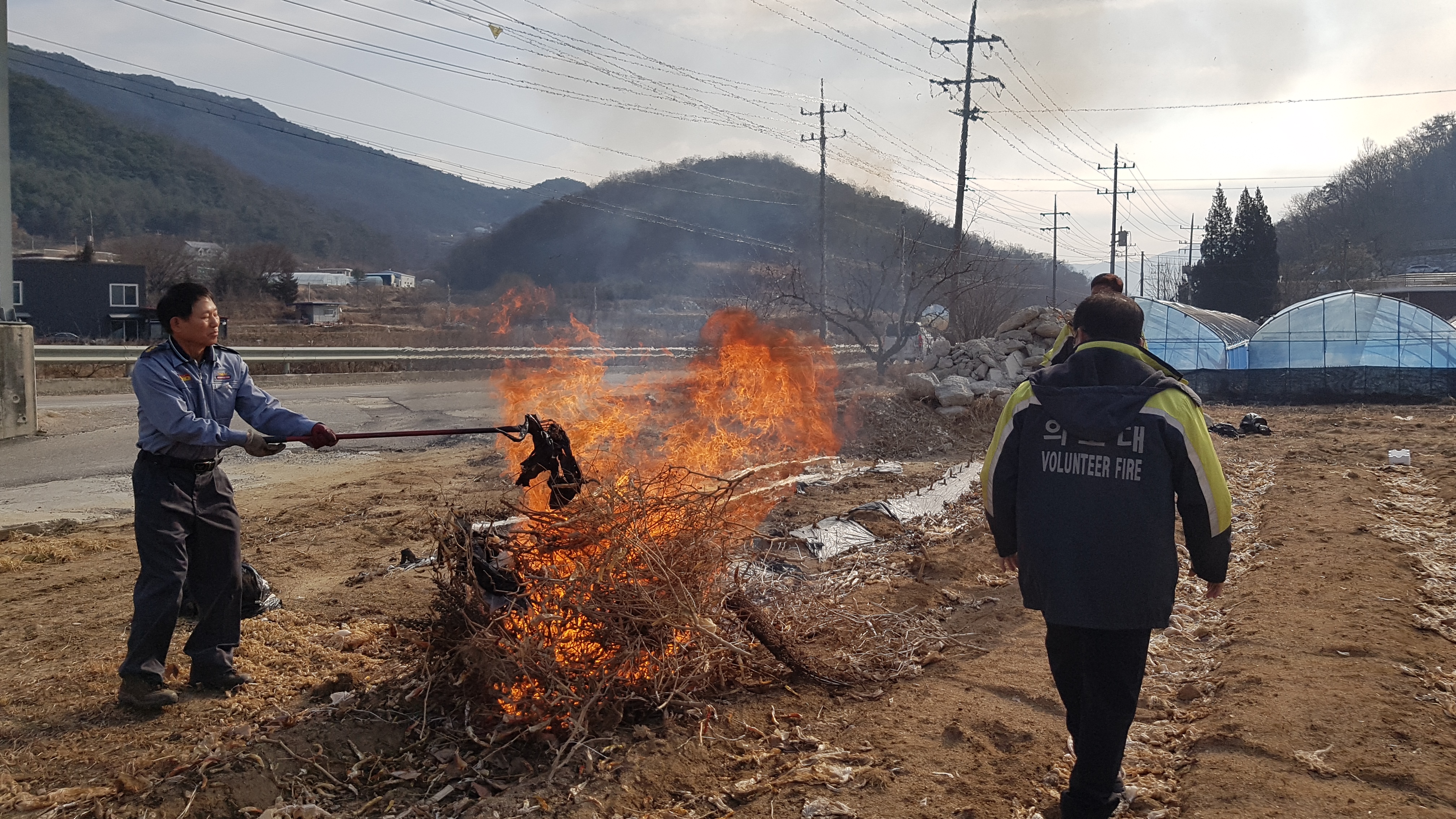 흥업남성의용소방대" 대안1리마을 농작물 소각"활동