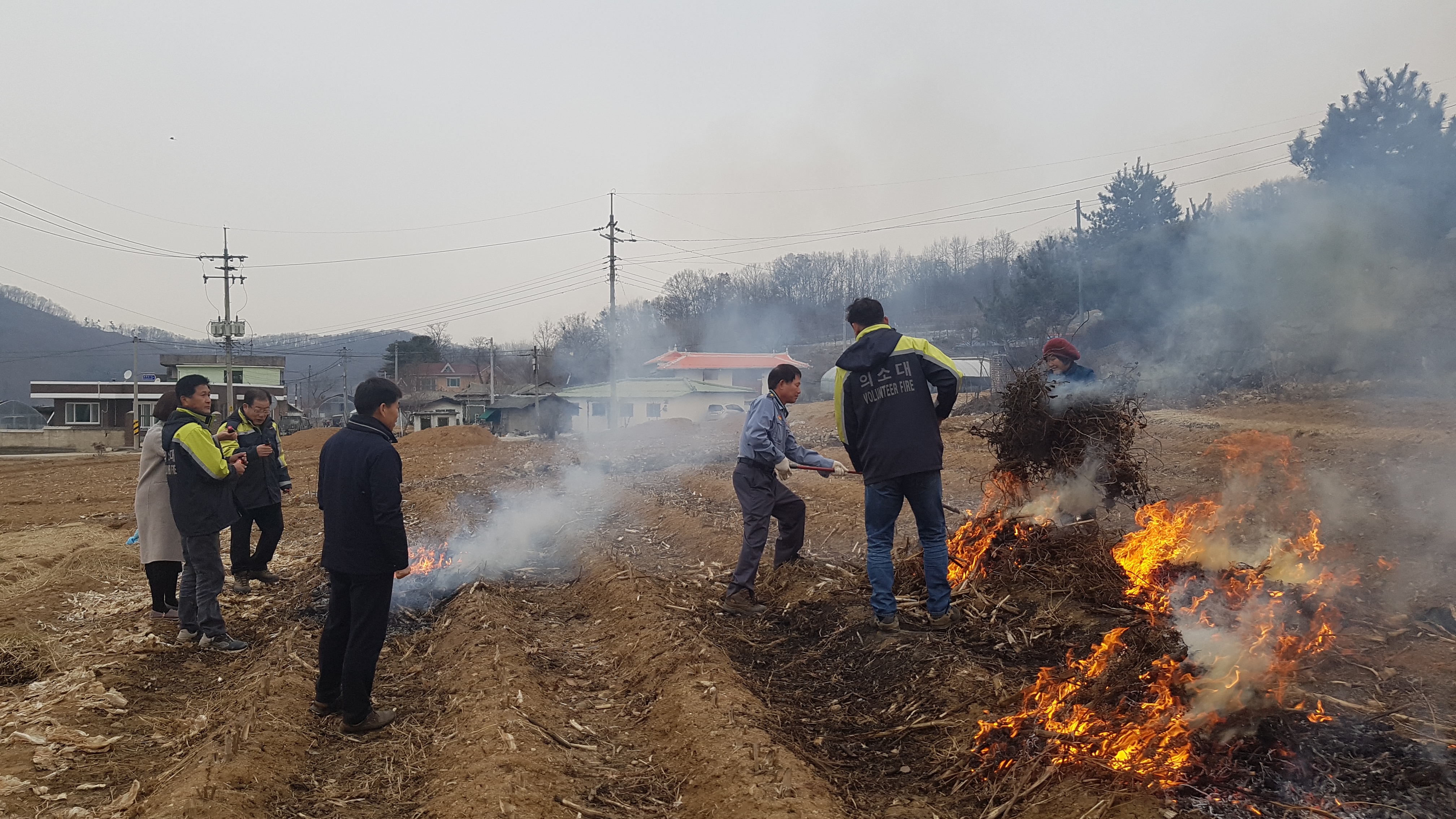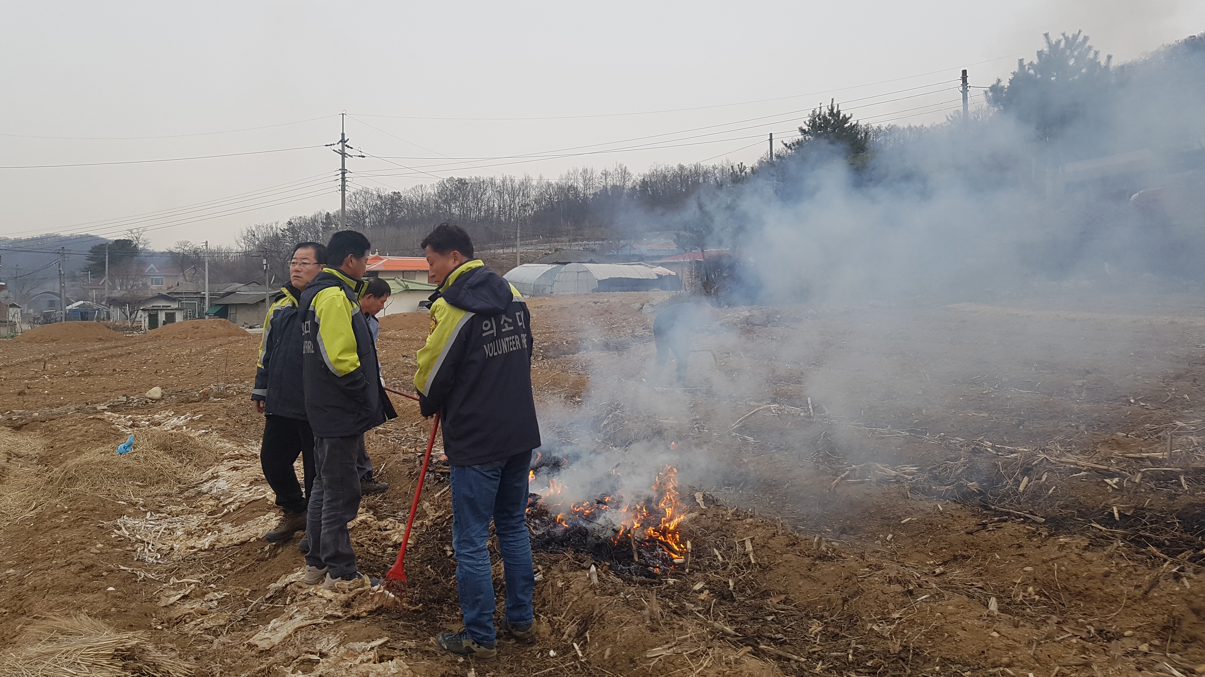 흥업남성의용소방대" 사제2리 마을 농작물 소각활동"