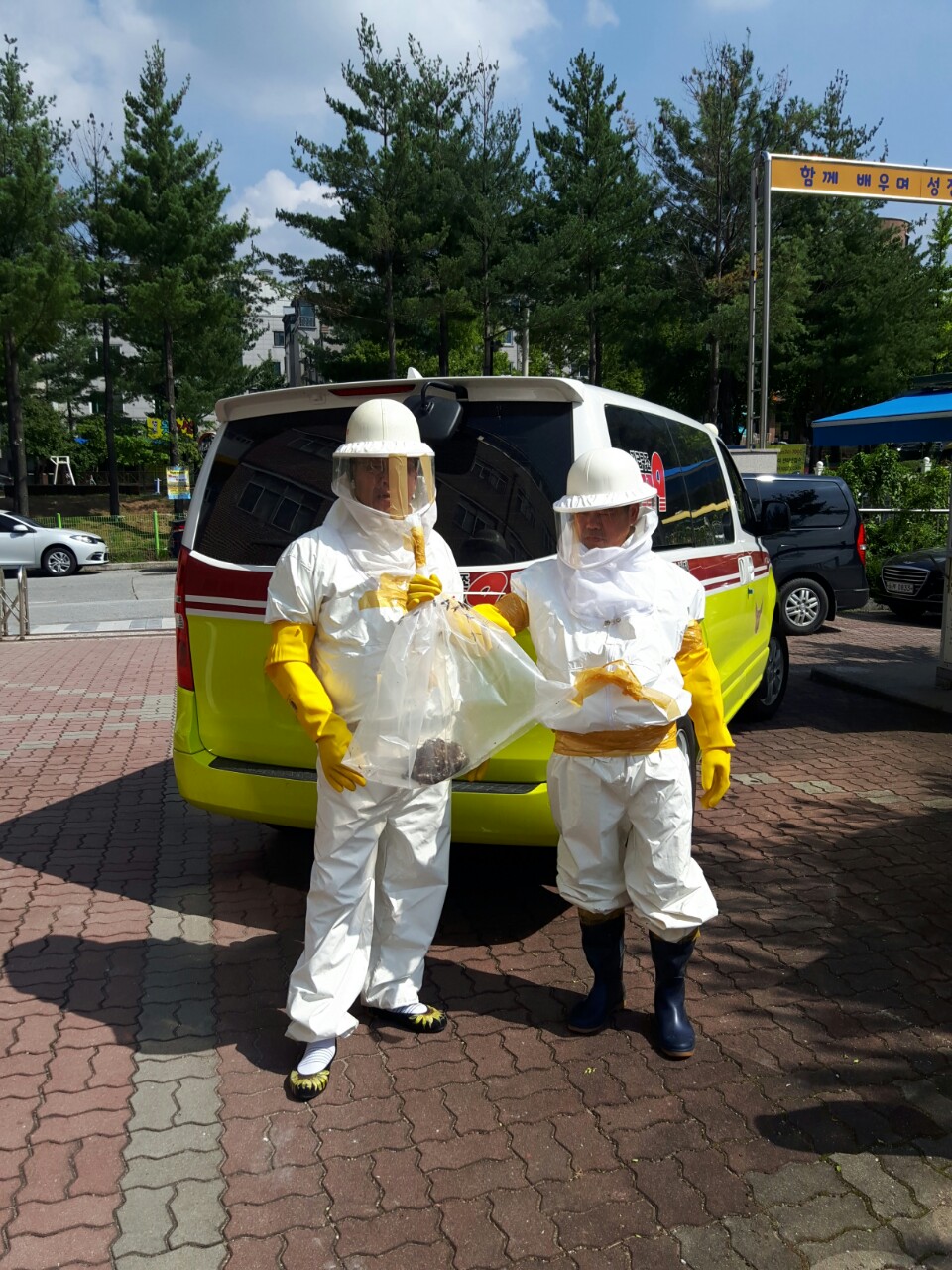 원주남성의용소방대 : 벌집제거 출동