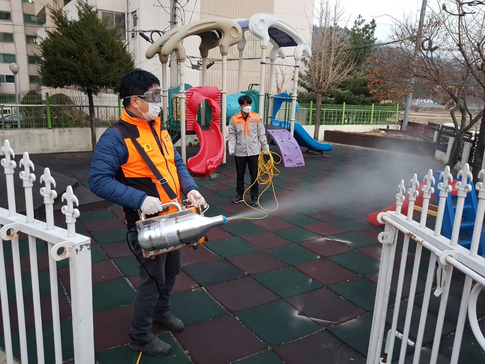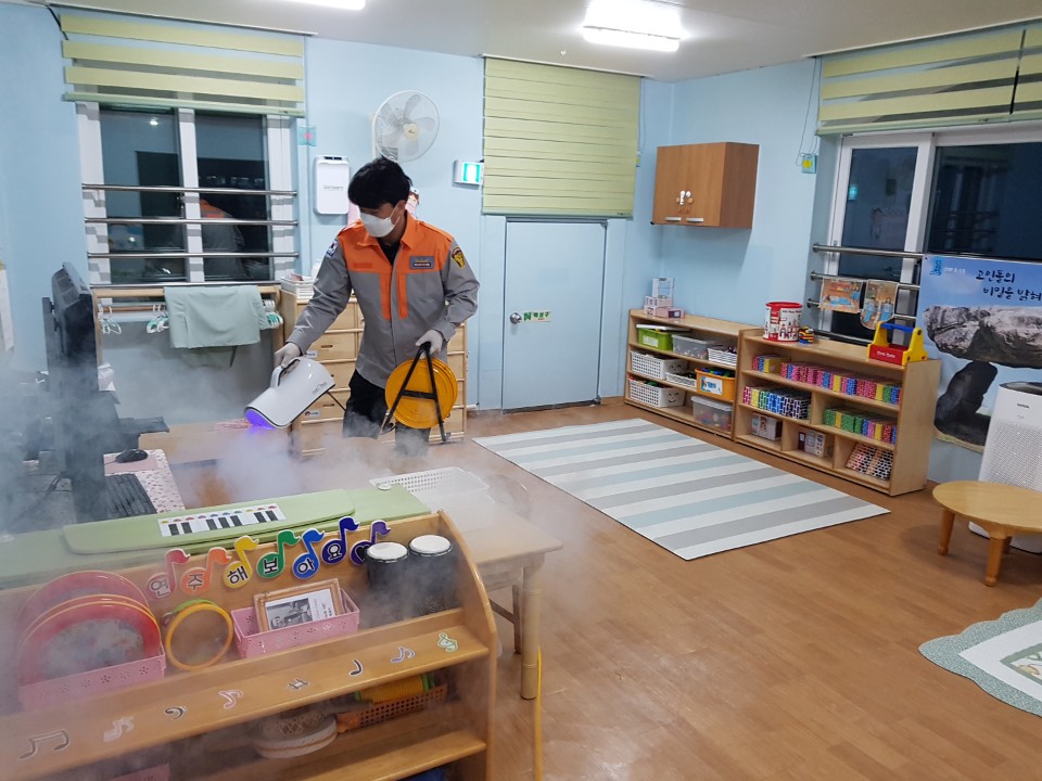 <원주남성의용소방대 관내 어린이집 코로나19 방역실시>