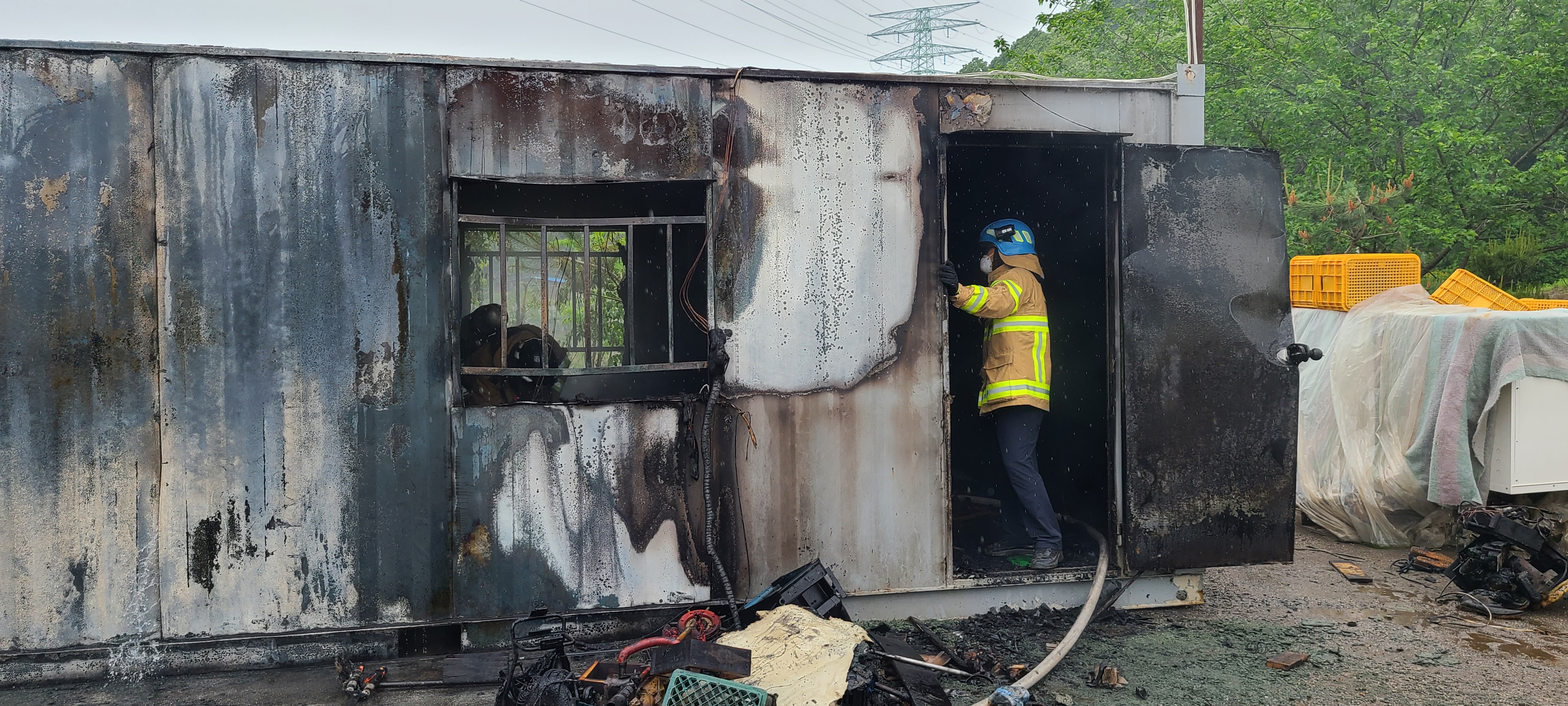 2021년5월15일 오전10시30분경 호저면 주산리 호매곡1길101-14 컨테이너 창고 화재 발생