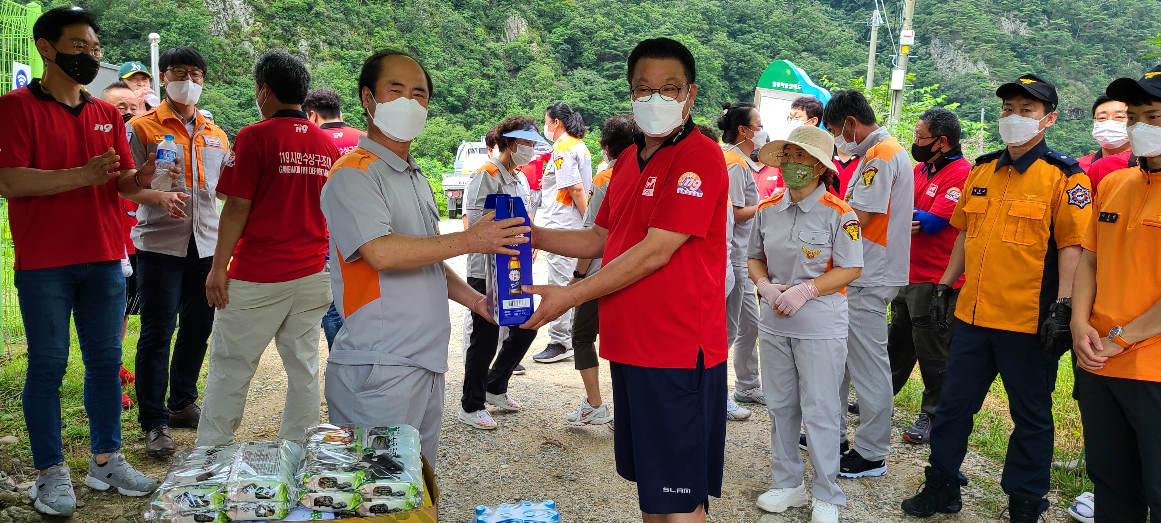 호저의소대는 칠봉유원지에서 수고하시는 원주의소대 원주시민 수상구조대를 방문하여 위문품을 전달 하였습니다.