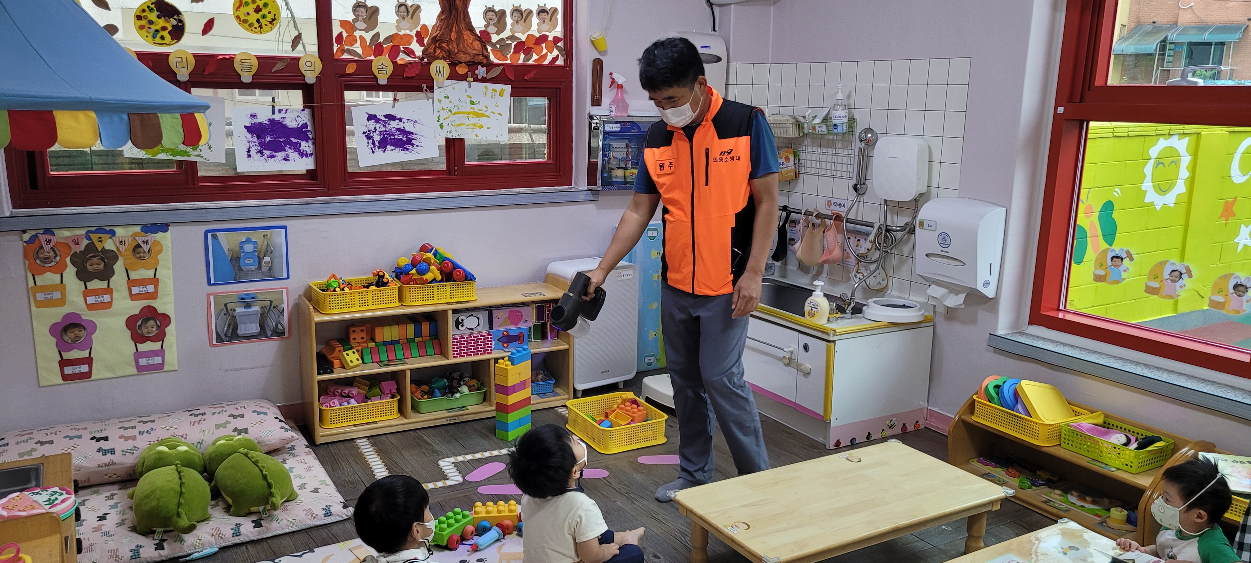 원주남성의용소방대 어린이집 방역활동