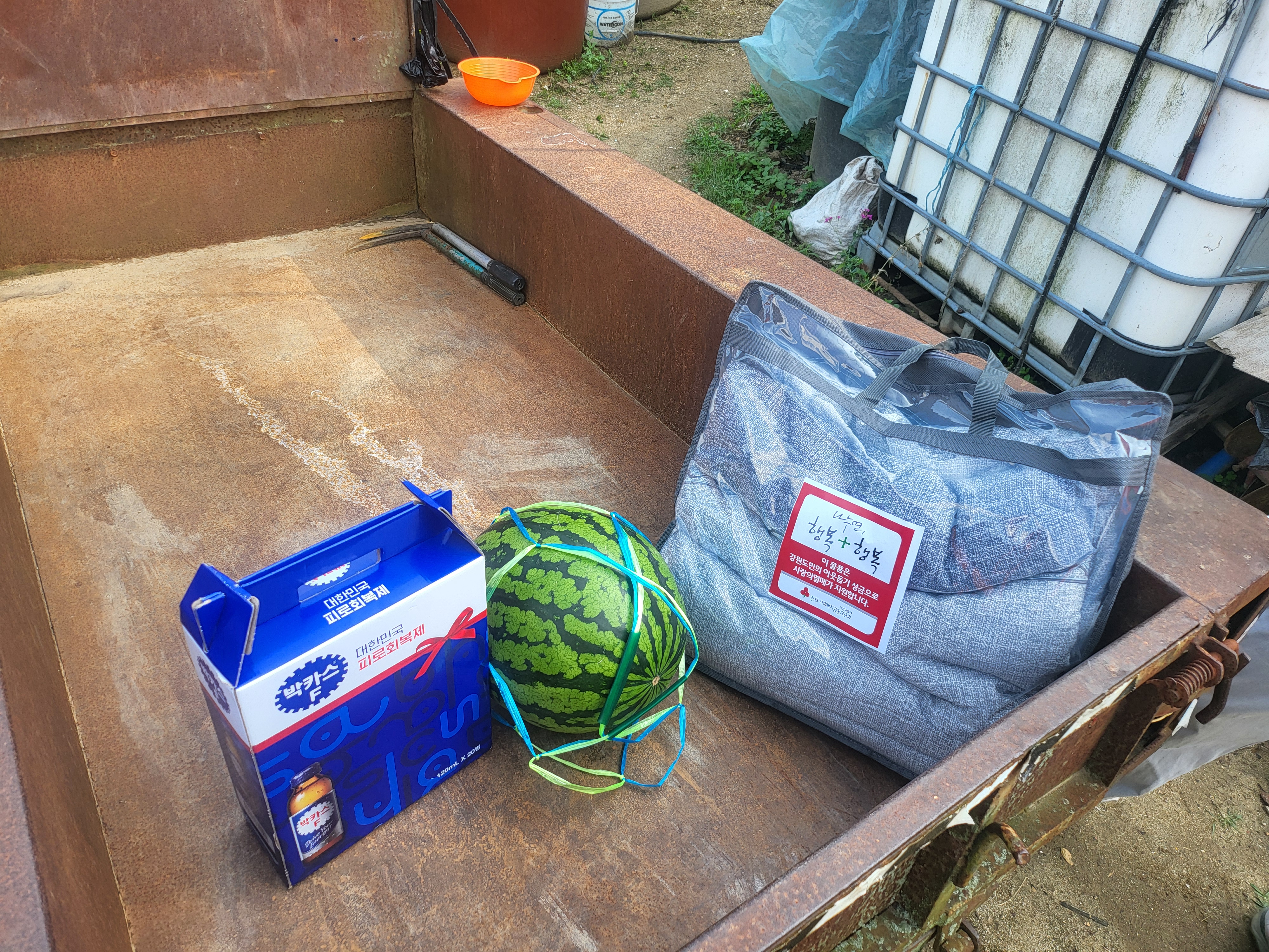 여름맞이 홑 이불 및 수박, 음료수 전달