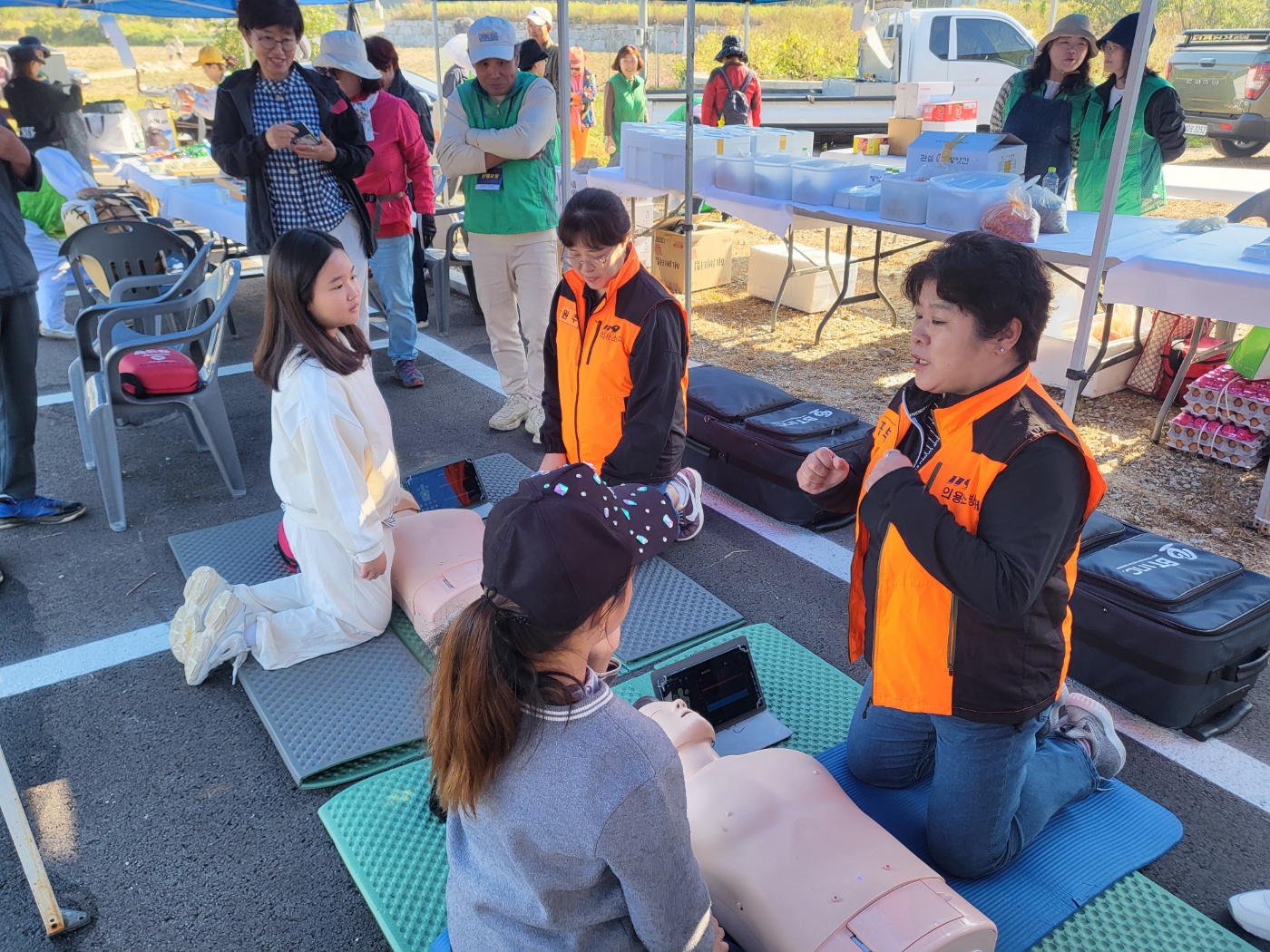 내용: 판부면걷기대회 행자장내 심폐소생술 체험교육및 봉사활동 실시