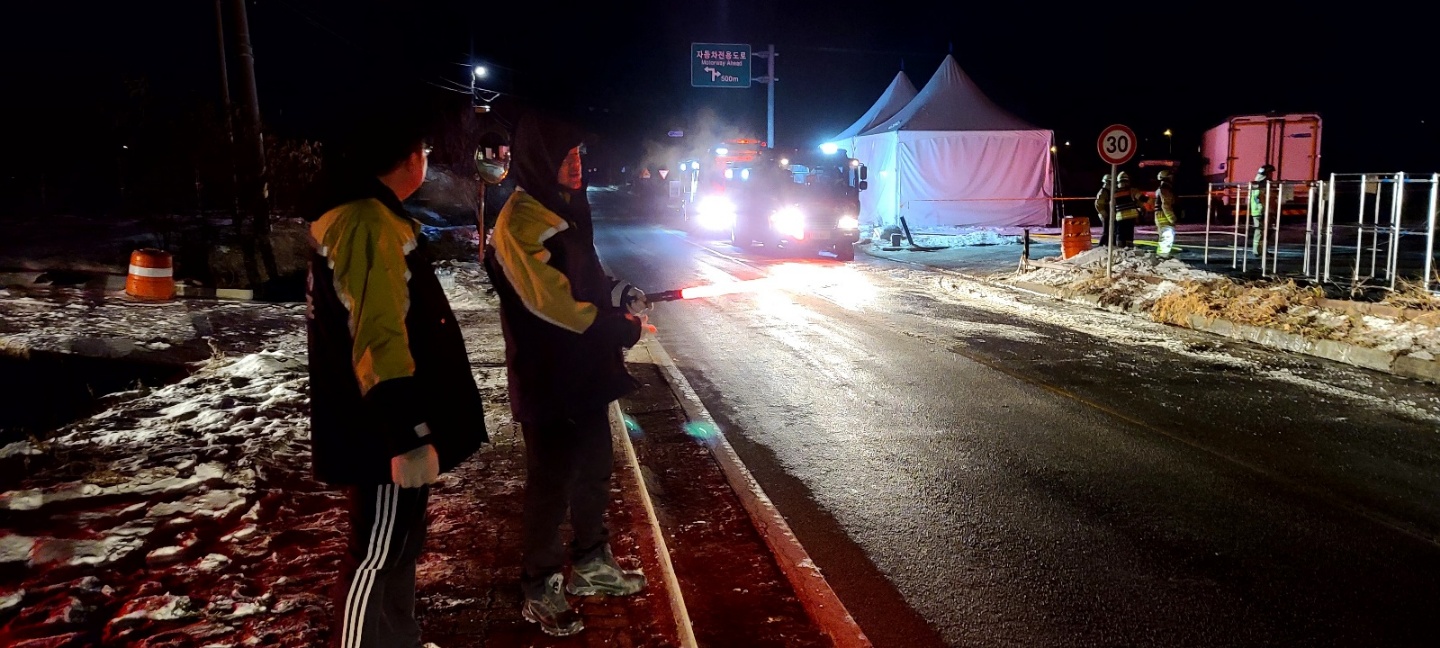 - 생수 전달 및 화재발생 주변 도로 통제