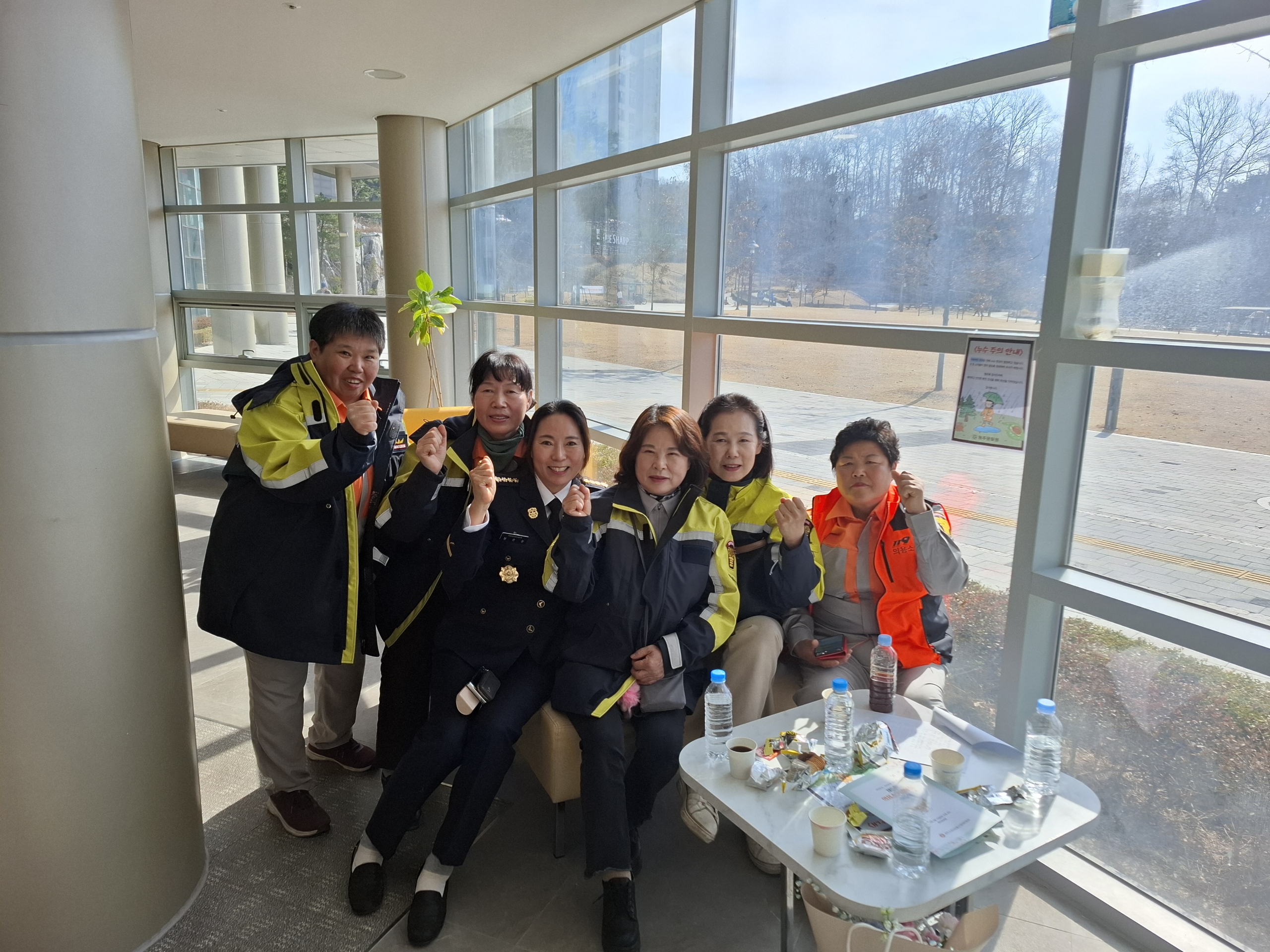 인원: 천은정 대장, 김옥수 부대장, 김명숙 지도부장, 유정매 보급부장, 진금순 대응반장, 박영분 대원