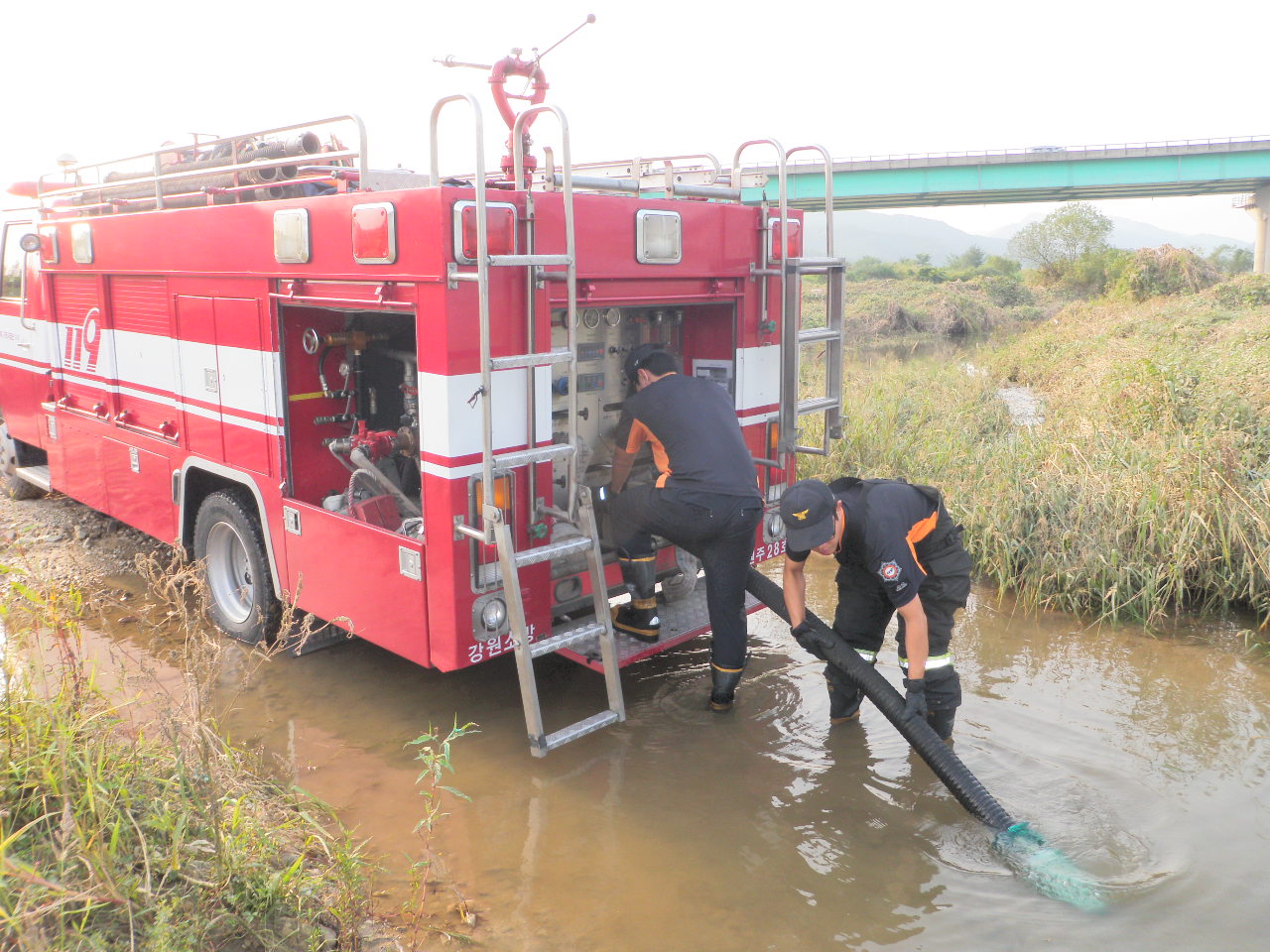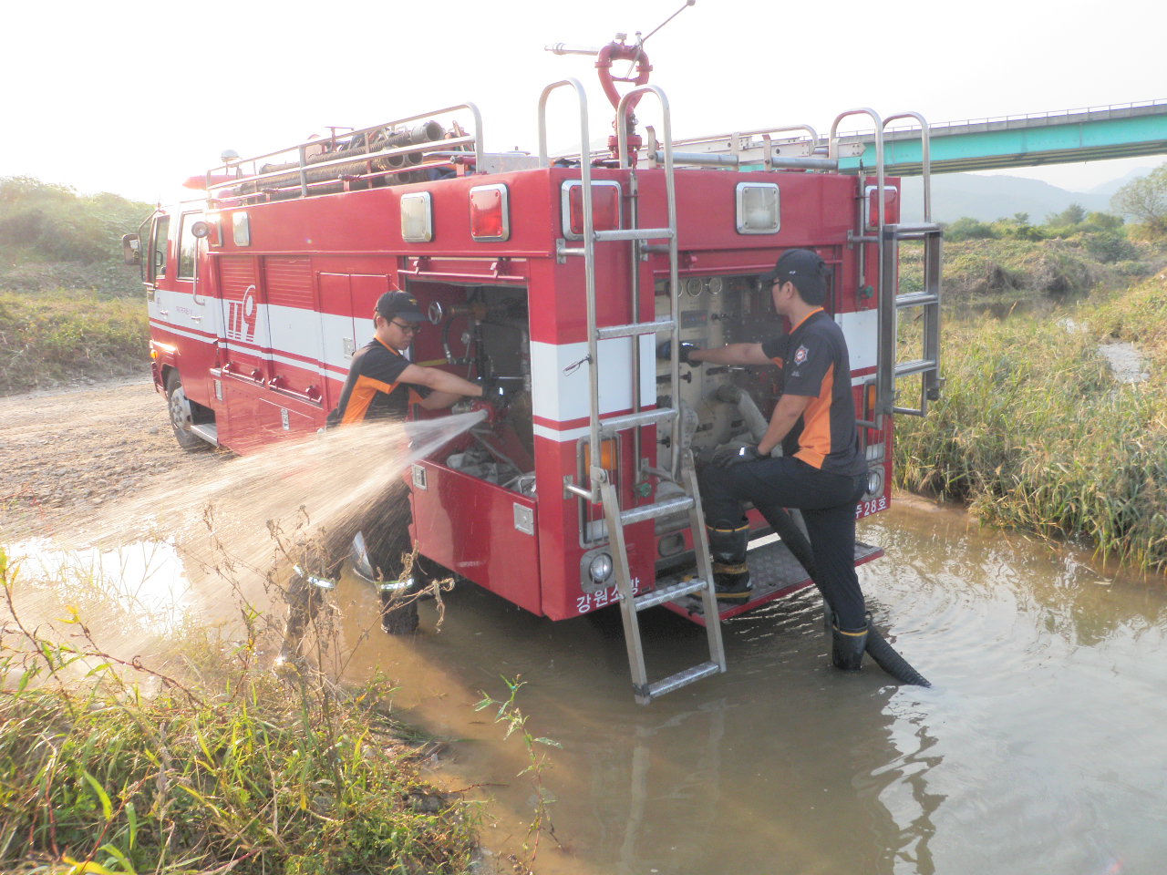 화재진압중 강, 냇가등의 자연수원을 이용, 신속한 급수지원을 통해
