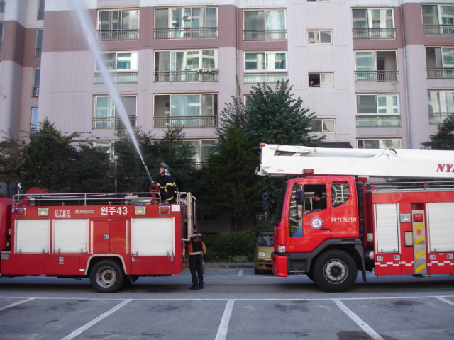 원주소방서(서장 박창진) 단구119안전센터에서는 행구동 소재 건영아파트에서 소방훈련을 실시하였습니다. 자위소방대와 함께 초기진화 요령과 단지내 소방시설을 이용한 화재진압훈련을 실시한 후 소방통로 확보의 중요성 및 소방안전교육 실시와 1가구 1소화기 갖기 운동에 동참할 것을 당부하였습니다.