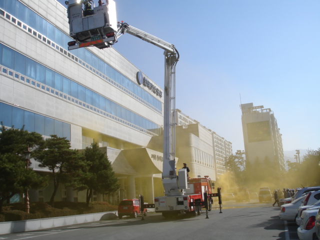이날 훈련은 펌프차의 방수포 및 옥내소화전을 이용하여 가상화재를 진입하였으며 옥상에 요구조자를 구조하는 훈련이였습니다. 훈련이 실전처럼 일사천리로 진행되었으며 긴급상황시 가스공사직원들과 단구119안전센터는 협동하여 화재진압을 완벽히 수행할 것입니다.