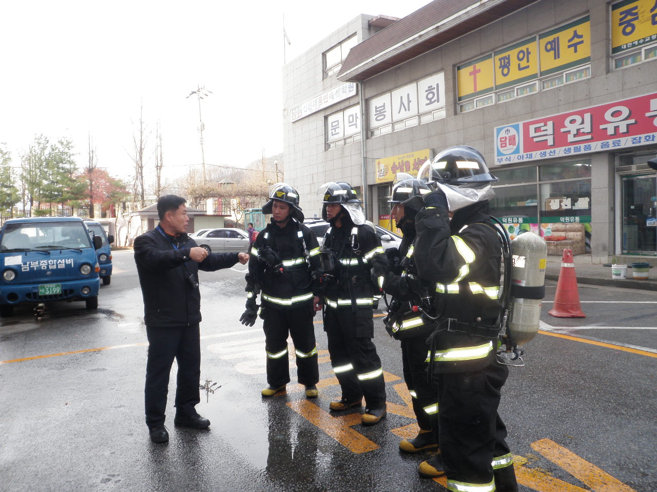 원주소방서(서장 박창진) 문막119안전센터에서는 2010. 11. 24. 14:00 문막읍 건등리 덕원아파트에서 현지적응훈련을 실시하였습니다.