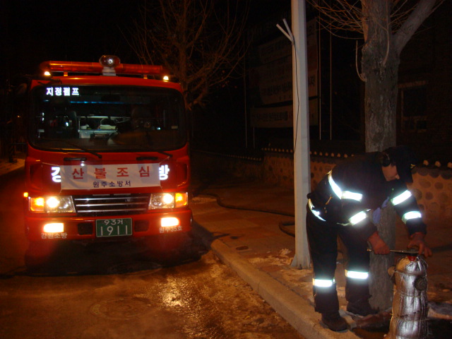 원주소방서 문막안전센터 지정지역대에서는 2011년 1월이 시작되면서 1일 평균 8회(판대리,안창리,가곡리), 약 15,000~20,000리터의 급수를 매일 주,야를 가리지 않고 방역초소에 지원하고 있습니다. 때때로 출동하는 구급은 준비 운동일 뿐(?), 동물과 사람을 동시에 구조하려는 이곳의 소방대원들은 어스름한 지정로를 누비는 진정한 지역지킴이가 이닐런지....