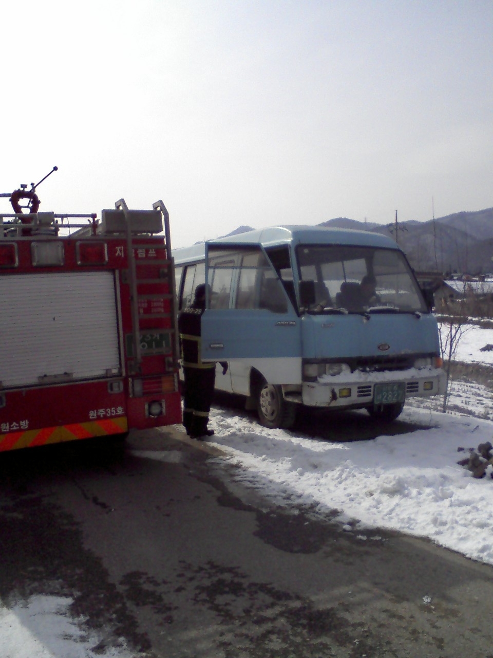 원주소방서 문막안전센터(센터장 전인덕)에서는 2011.1.28(금) 지정면 가곡리 급수지원후 귀대길에 엔진시동이 걸리지 않아 도움을 요청하는 민원인을 위하여 바쁜 와중에도 흔쾌히 동력(24v)제공을 수락하였습니다. 피로에 지친 몸이지만 이분에겐 가장 어려운 문제가 해결되신 듯 크게 만족해 하셨습니다. 점차 힘들어지는 지역민들의 힘겨운 삶에 지역대의 존재감! 이분에겐 새로운 감동으로 자리잡을 듯 합니다.