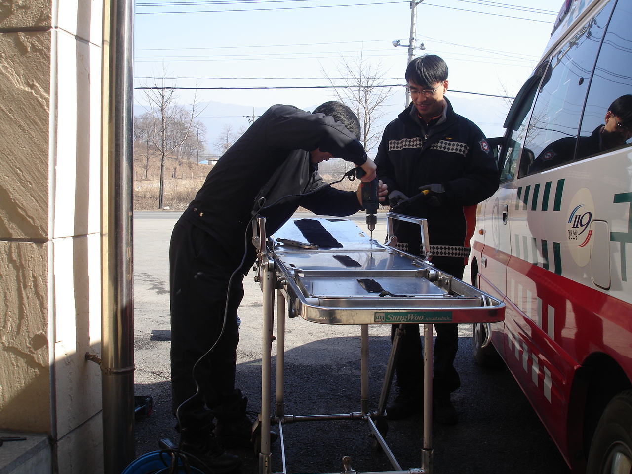 원주소방서(서장 박창진) 단구119안전센터에서는 환자 이송에 이용되는 주들것 연결 고리의 나사가 잘 풀러지고 빠지는 것을 발견하고 들것 정비를 하였습니다.