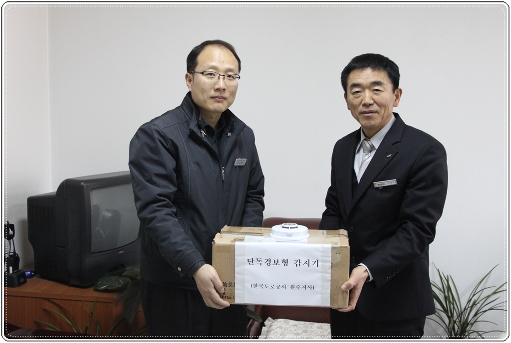 한국도로공사 원주지사(지사장 김동희)는 24일 원주소방서를 방문 기초생활수급자 주택화재예방에 써달라며 단독경보형감지기 100개를 기증했습니다.
